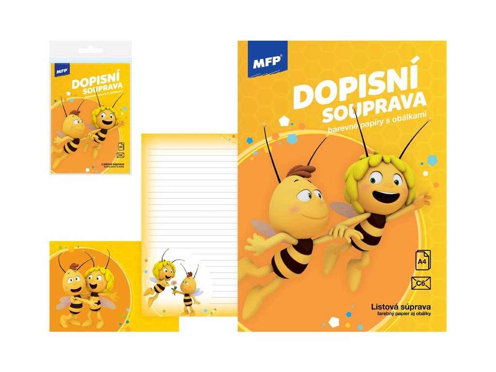 Listová súprava s obrázkom Včielky Maji. Píšete radi listy svojim známym? Kúpte si u nás krásne listové papiere s rôznymi motívmi a nezabudnite ani na písacie potreby. Balenie obsahuje: - 10 potlačených listových papierov formátu A4 - 5 farebných poštových obálok FORMÁT: A4 PREVEDENIE: linajkový Balené v plastovom priehľadnom obale so závesom. Uvedená cena je za 1 balenie.Dodatočné parametre
