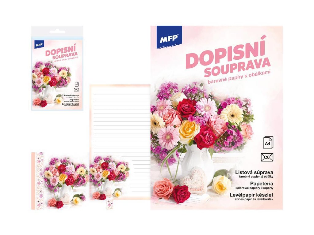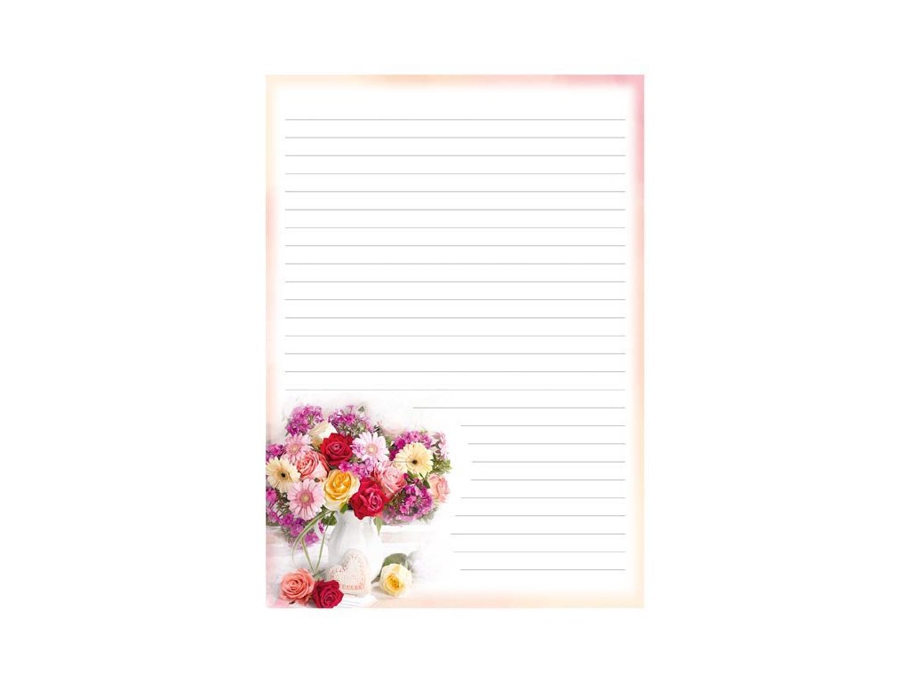 Listová súprava s obrázkom kytice kvetov. Píšete radi listy svojim priateľom? Kúpte si krásne listové papiere s rôznymi motívmi a nezabudnite na písacie potreby. BALENIE OBSAHUJE: - 10 potlačených dopisných papierov formátu A4 - 5 farebných poštových obálok FORMÁT: A4 PREVEDENIE: linkované Dodávame v krásnej papierovej krabici. Balené v plastovom priehľadnom obale so závesom. Uvedená cena je za 1 balenie.Dodatočné parametre