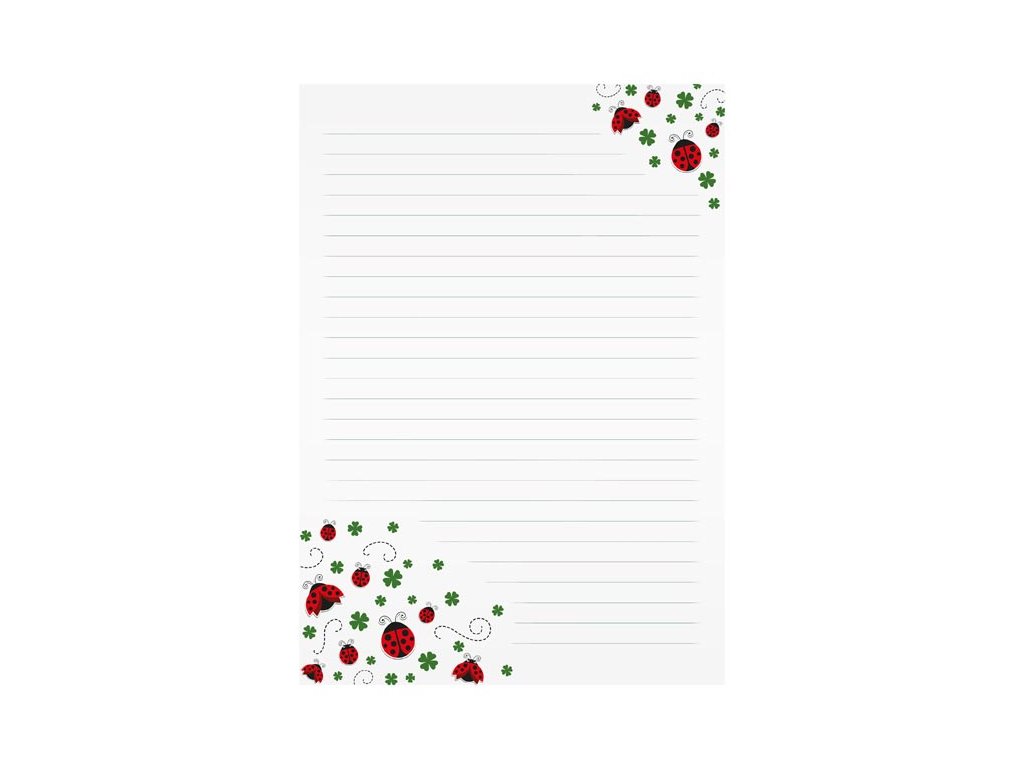 Veselé písanie s lienkami! Rozveseľte každý list veselými lienkami a štvorlístkami. Linkované papiere a farebné obálky dodajú vašim odkazom radosť a kvapku šťastia. BALENIE OBSAHUJE: - 10 potlačených listových papierov formátu A4 - 5 farebných poštových obálok formátu C6 FORMÁT: A4 MOTIV: lienky PREVEDENIE: linajkový Balené v plastovom priehľadnom obale so závesom. Uvedená cena je za 1 balenie.Dodatočné parametre