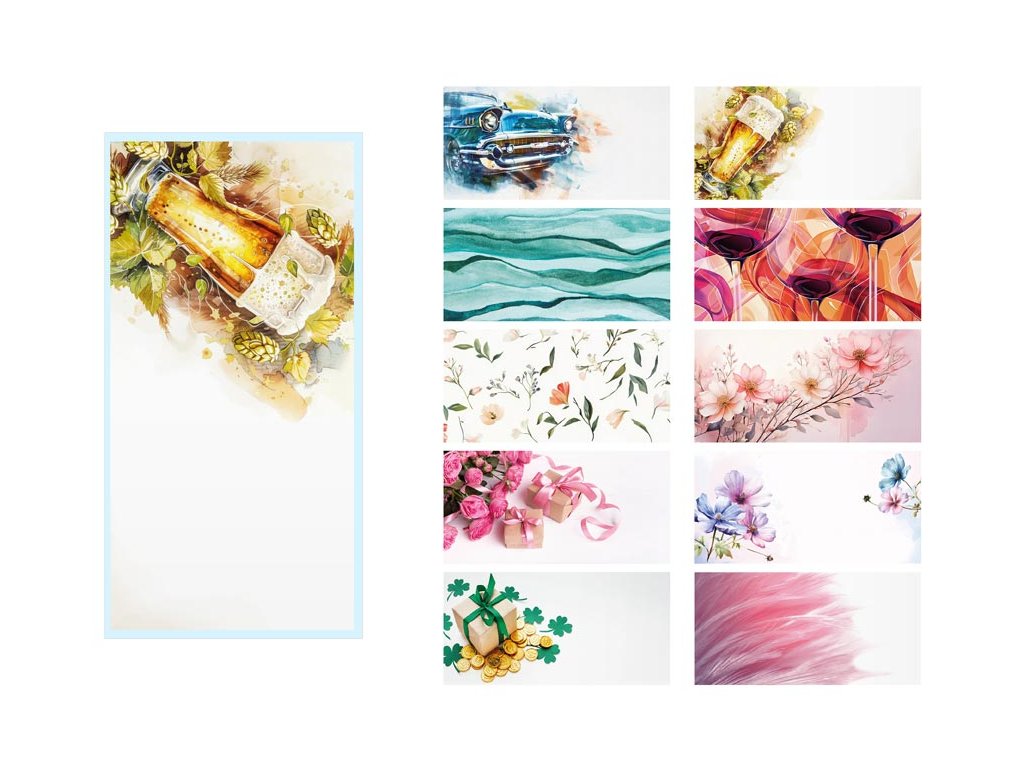 Celoplošně potištěné, celoroční, dopisní obálky DL s krycí páskou. Posíláte rádi dopisy? Pořiďte si u nás dopisní obálky a nezapomeňte si u nás také koupit dopisní papír a propisku! Gramáž papíru: 170g/m2 Vybrat si můžete z 10 různých potisků. Obálky jsou uloženy v plastovém sáčku. Dodáváme v mixu po 20 ks. Uvedená cena je za 1 ks.Dodatočné parametre
