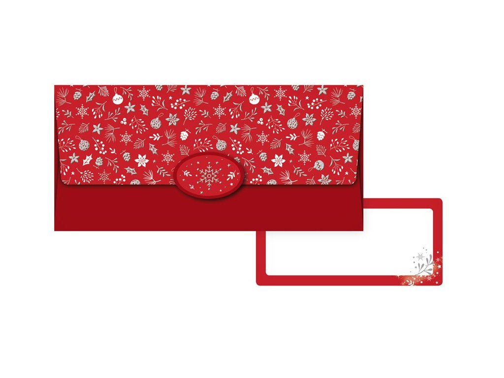 Darčeková obálka na peniaze s vianočným motívom a uzatvárateľnou chlopňou. Je ideálna na obdarovanie, keď chcete peniaze odovzdať elegantným a vkusným spôsobom. Vnútri sa nachádza kartička bez textu, na ktorú môžete napísať venovanie. FARBA: tmavočervená MOTÍV: vianočné motívy Dodávame v plastovom sáčku. Uvedená cena je za 1 ks.Dodatočné parametre