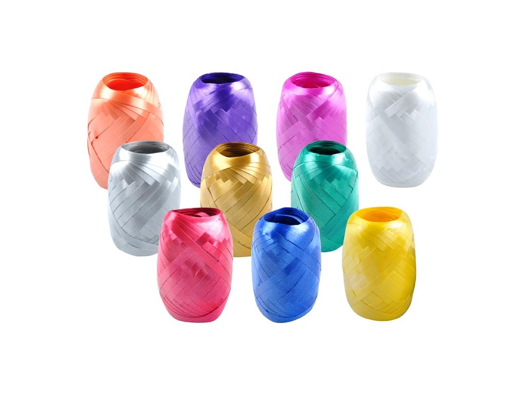 Dekoračná stuha, mix farieb. Vhodná na viazanie a balenie darčekov alebo viazanie kvetov. Pretiahnutím stuhy cez nožnice môžete vytvoriť nádhené lokne a stuhu rôzne zakrútiť. Vďaka tomu bude váš darček nádherne naaranžovaný. Dĺžka: 20 m Šírka: 0,5 cm Farba: oranžová, fialová, biela, strieborná, zlatá, zelená, modrá, červená, ružová, žltá Všetkých 50 ks je balených v sáčku. Dodávame v mixe farieb. Uvedená cena je za 1 ks.Dodatočné parametre