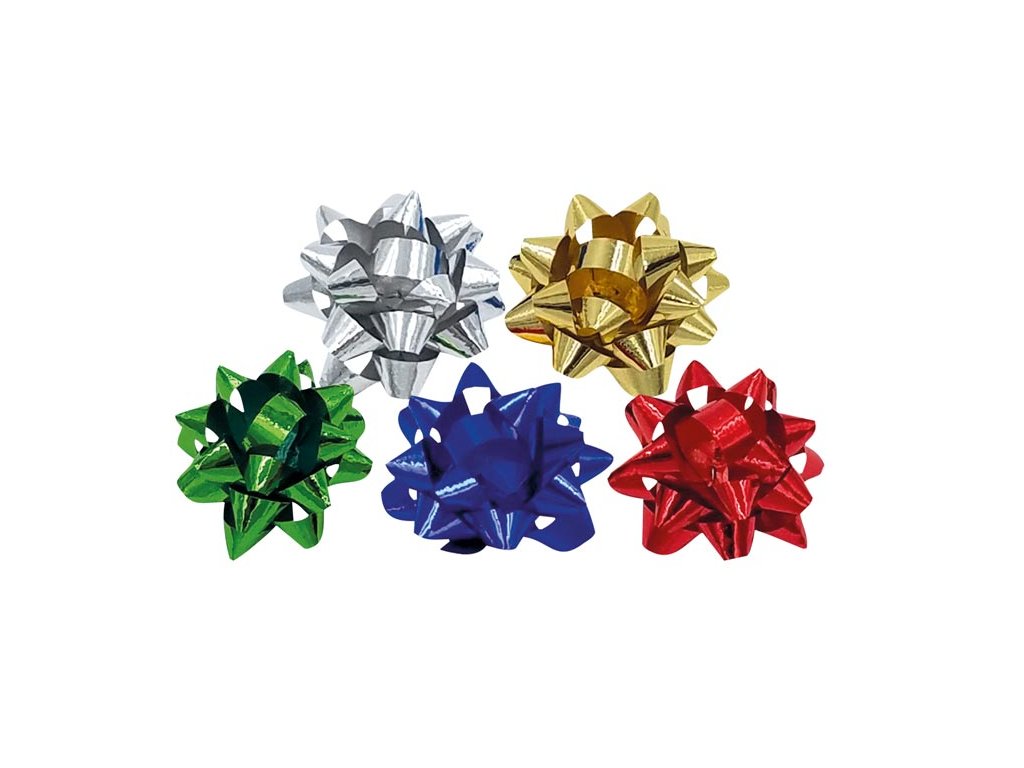 Rozetka v mixe metalických farieb. Ideálne pre moderné ozdobenie darčeka. Rozetka má na spodnej strane lepiacu pásku pomocou ktorej ju pripevníte na krabičku. Balenie: 100 ks Priemer: 30 mmm Šírka stuhy: 5 mm Farba: strieborná, zlatá, zelená, modrá, červená Všetkých 100 ks je balených v sáčku. Dodávame v mixe farieb podľa skladovej zásoby. Uvedená cena je za 1 ks.Dodatočné parametre
