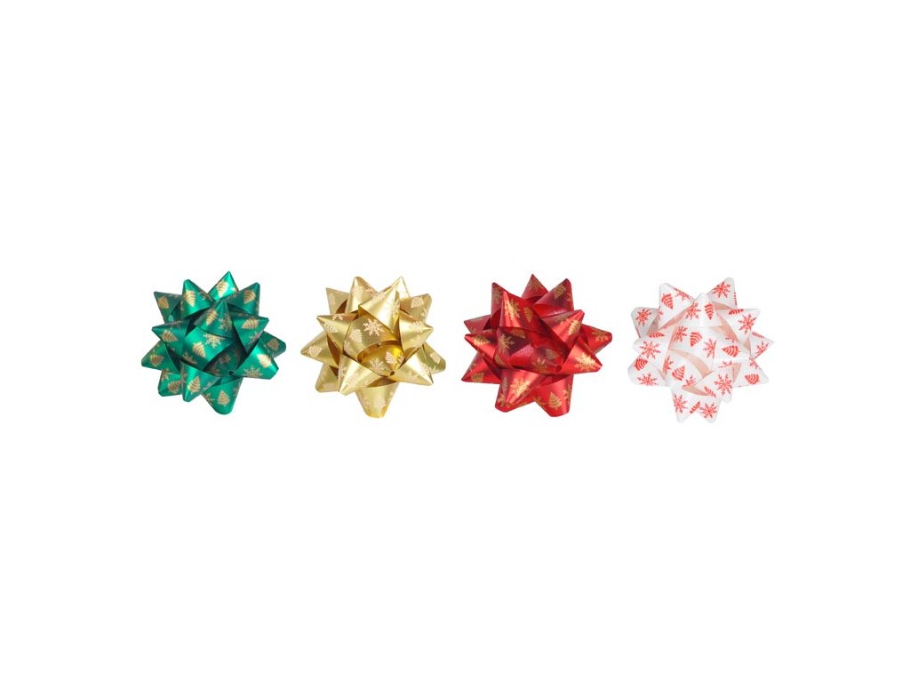 Rozetka s potlačou snehových vločiek a stromov v kombinácii farieb. Je ideálna na zdobenie darčekov a sviatočných balení, ktorým dodá elegantný a slávnostný vzhľad. Zvyčajne sa používa na špeciálne príležitosti, ako sú Vianoce, narodeniny alebo iné oslavy. Ľahko sa používa vďaka samolepiacej zadnej strane. Balenie: 50 ks Priemer: 50 mm Šírka stuhy: 10 mm Farba: zelená, zlatá, červená, biela Všetkých 50 ks je balených vo vrecku. Dodávame v mixe farieb podľa skladových zásob. Uvedená cena je za 1 ks.Dodatočné parametre