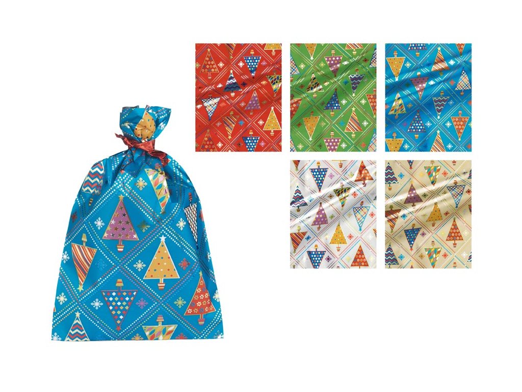 Vianočné celofánové vrecúško s motívom vianočných stromčekov v mixe farieb. Vyrobené z luxusného celofánu s potlačou. Skvelé na zabalenie drobných darčekov. Vrecúško môžete uzavrieť viazacou stuhou a tým ho dozdobiť. Rozmer: 160 x 250 mm Motív: vianočné stromčeky Farba: červená, zelená, modrá, strieborná, zlatá Dodávame v mixe 5 ks podľa skladovej zásoby. Uvedená cena je za 1 ks.Dodatočné parametre