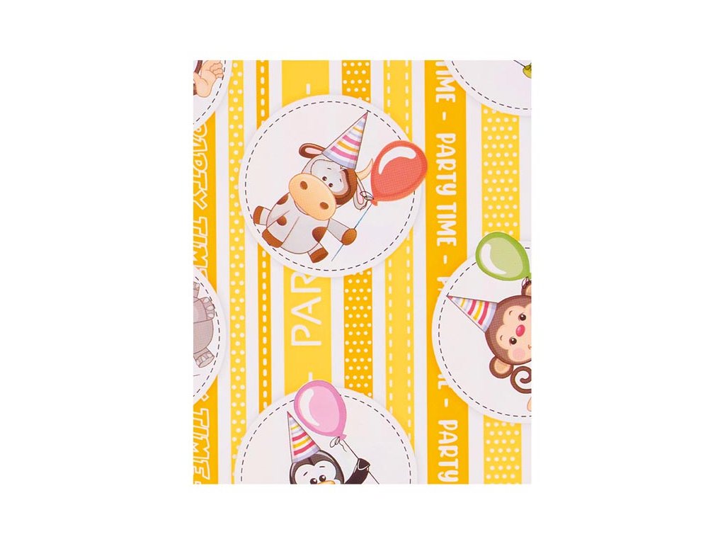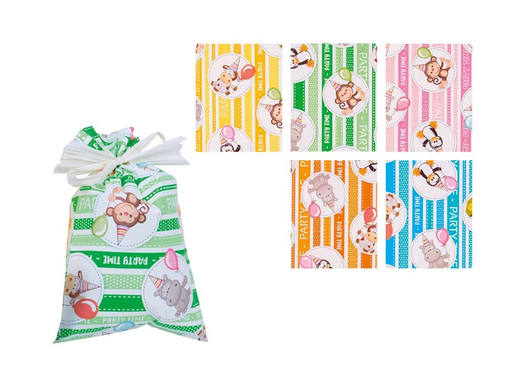 Darčekové vrecúško v kombinácii farieb s detskými motívmi (opica, hroch, krava, tučniak). Skvelé na zabalenie malých darčekov. Vrecúško môžete uzavrieť viazacou stuhou a tým ho dozdobiť. V našej ponuke nájdete veľký výber stúh a roziet, ktoré vám pomôžu pri dekorácii balíčka. Rozmery: 350 x 500 mm Motív: opica, hroch, krava, tučniak Farba: žltá/biela, zelená/biela, ružová/biela, oranžová/biela, modrá/biela Dodávame v mixe po 5 ks podľa skladovej zásoby. Uvedená cena je za 1 ks.Dodatočné parametre