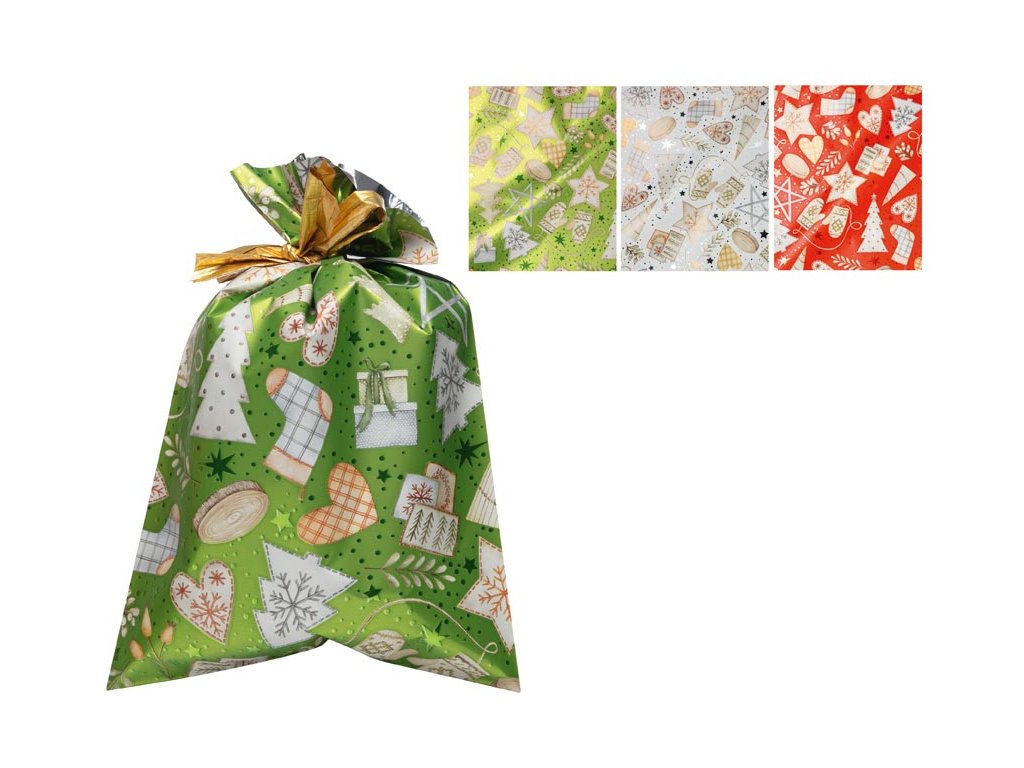 Vianočné darčekové vrecko vyrobené z lesklého materiálu s dekoratívnou potlačou vianočných motívov. Umožňuje ľahko zabaliť rôzne druhy drobných darčekov bez nutnosti použitia baliaceho papiera. Praktický a elegantný spôsob balenia, ktorý šetrí čas aj námahu. Vrecko môžete uzavrieť viazacou stuhou a tým ho dozdobiť. Motív: vianočné Materiál: polypropylén Rozmer: 160 x 250 mm Farba: zelená, biela, červená Dodávame v mixe po 3 ks podľa skladovej zásoby. Uvedená cena je za 1 ks.Dodatočné parametre