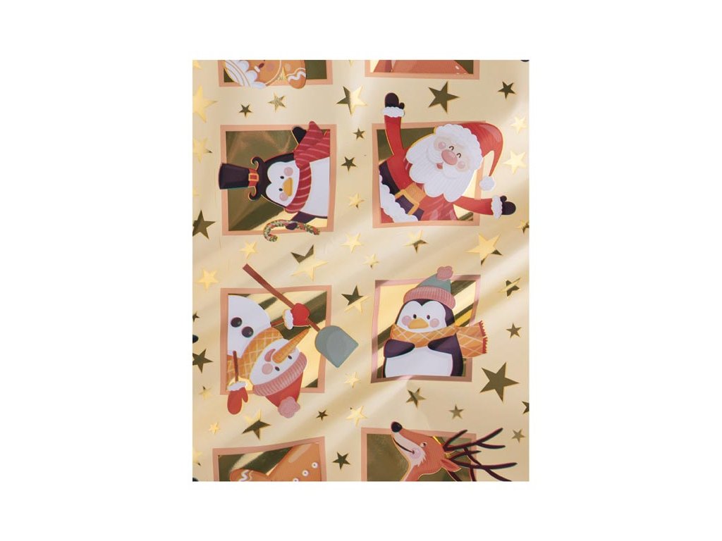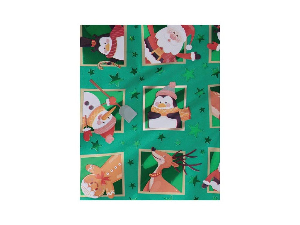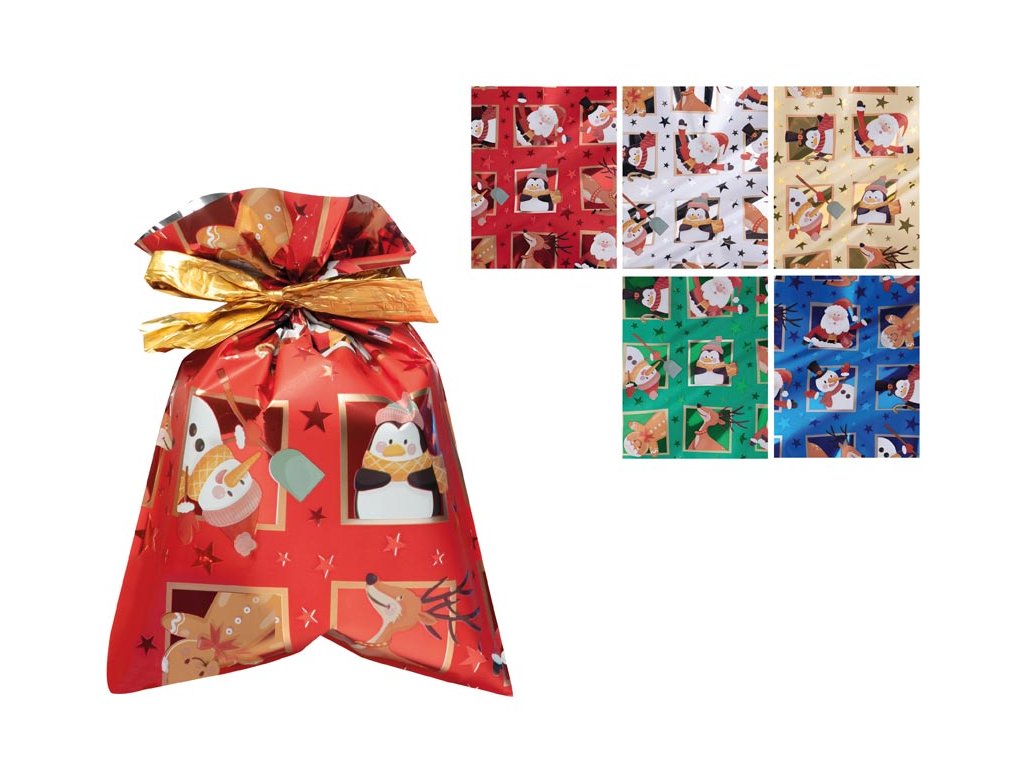 Vianočné darčekové vrecko, vyrobené z lesklého materiálu, zdobené veselými vianočnými motívmi, ako sú Santa Claus, tučniak, sob, snehuliak a ďalšie. Umožňuje ľahko zabaliť rôzne druhy drobných darčekov bez nutnosti použitia baliaceho papiera. Praktický a elegantný spôsob balenia, ktorý šetrí čas aj námahu. Vrecko môžete uzavrieť viazacou stuhou a tým ho dozdobiť. Materiál: polypropylén Rozmer: 350 x 500 mm Farba: červená, strieborná, zlatá, zelená, modrá Motív: Santa Claus, tučniak, sob, snehuliak Dodávame v mixe po 5 ks podľa skladovej zásoby. Uvedená cena je za 1 ks.Dodatočné parametre
