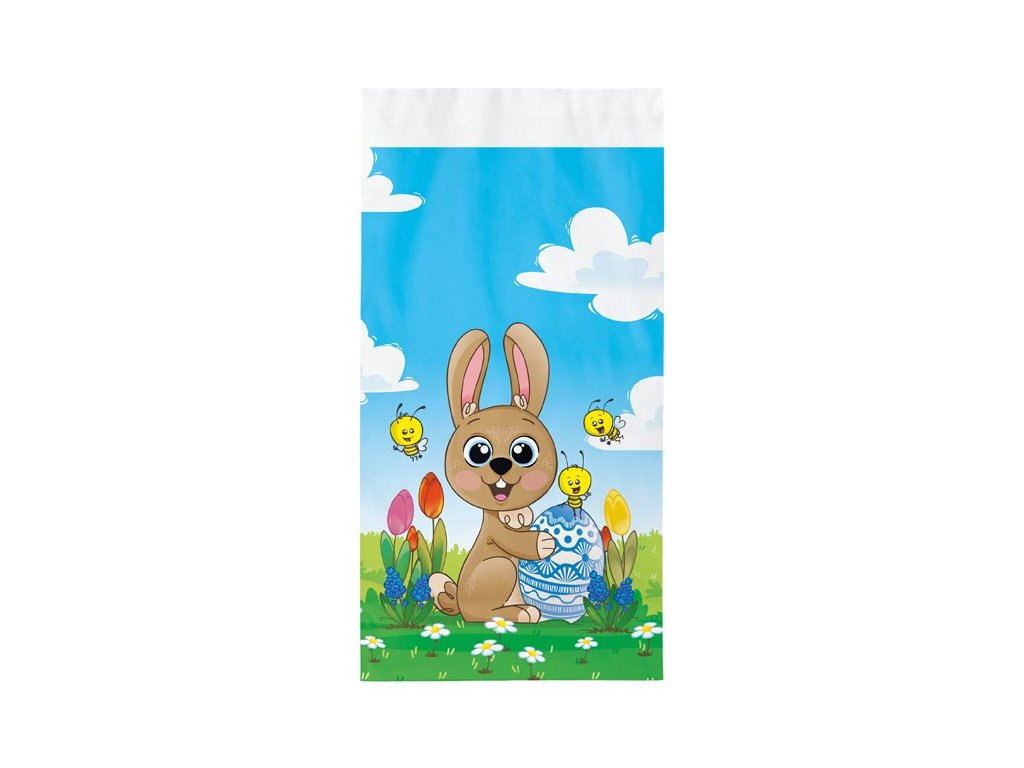 Toto veľkonočné vrecko s roztomilým zajačikom a zdobeným vajíčkom vás okamžite naladí na sviatočnú atmosféru! Farebná jarná krajina plná kvetov a včielok na pozadí dodáva sáčku veselý a hravý vzhľad, ktorý poteší malé aj veľké. Je ideálny na veľkonočné dobroty, maľované vajíčka alebo drobné darčeky. Vyrobený z kvalitného a odolného PP materiálu zaistí, že vaše darčeky budú bezpečne uložené a zároveň krásne zabalené. Toto vrecko nie je len praktický obal – je to aj pôsobivá dekorácia, ktorá rozjasní veľkonočné sviatky a vykúzli úsmev každému, kto ho dostane! Tlač: 5/0 CMYK Materiál: polypropylén Hrúbka materiálu: 0,030 mm Uvedená cena je za 1 ks.Dodatočné parametre