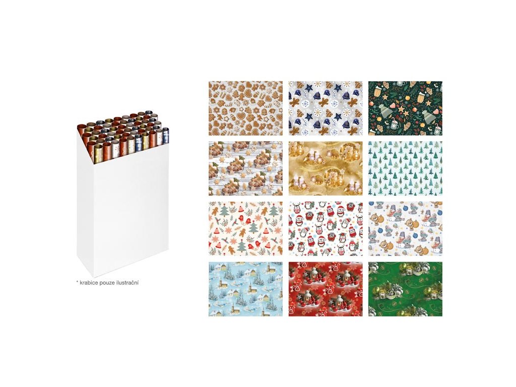 Vianočný baliaci papier rolky, 12 rôznych vzorov. Pri vianočných darčekoch je veľmi dôležitý obsah, ale aj to, ako je darček zabalený. Zaobstarajte si u nás vianočný darčekový baliaci papier s detským motívom. Nezabudnite na peknú stužku a menovky na darčeky.. Balení: 96 ks Gramáž: 70 g Vzor: rôzne vianočné vzory Veľkosť rolky: 5 ks - 1000 x 700 mm Všetkých 96 ks je balených v kartónovej krabici. Dodávame v mixe podľa skladovej zásoby. Uvedená cena je za 1 ks.Dodatočné parametre