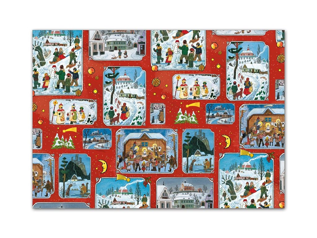 Baliaci papier vianočný s motívmi Jozefa Ladu. Pri vianočných darčekoch je veľmi dôležitý obsah, ale aj to ako je darček zabalený. Zaobstarajte si u nás vianočný darčekový baliaci papier s rôznymi motívmi. Nezabudnite si kúpiť aj peknú stužku a menovky na darček. Gramáž: 70 g Balenie: 150 ks Veľkosť hárku: 1000 x 700 mm Všetkých 150 ks dodávame v sáčku. Uvedená cena je za 1 ks.Dodatočné parametre