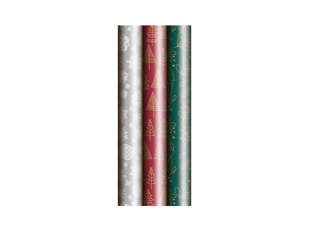 Baliaci papier, vianočné rolky - 3 rôzne vzory. Obsah darčeka je veľmi dôležitý, ale aj to, aby bol krásne zabalený. Získajte od nás darčekový baliaci papier s vianočným motívom. Nezabudnite si kúpiť peknú stuhu a menovky na darček. Gramáž: 80 g Balenie: 40 ks Vzor: rôzne vianočné vzory Rozmer rolky: 2000 x 700 mm Všetkých 40 ks je zabalených v kartónovej krabici. Dodávame v mixe podľa skladových zásob. Cena je uvedená za 1 ks.Dodatočné parametre