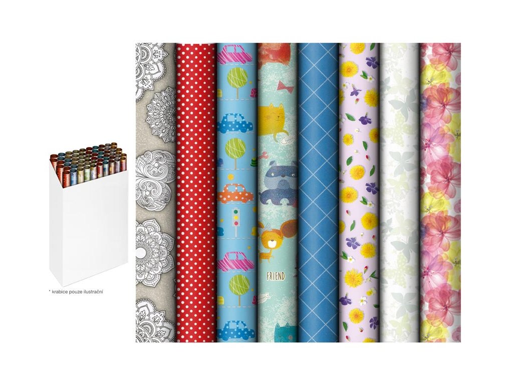 Rolka baliaceho papiera v kombinácii 8 motívov a farieb, pričom 6 motívov je celoročných a 2 detské. Veľmi dôležitý je obsah darčeka, ale aj to, aby bol krásne zabalený. Získajte od nás darčekový baliaci papier s celoročnými motívmi. Nezabudnite si kúpiť peknú stuhu a menovky na darček. Balenie: 60 ks Hmotnosť: 55 g Motív: mix motívov Rozmer rolky: 2000 x 700 mm Všetkých 60 kusov je zabalených v kartónovej krabici. Dodávame v mixe podľa skladových zásob. Uvedená cena je za 1 ks.Dodatočné parametre