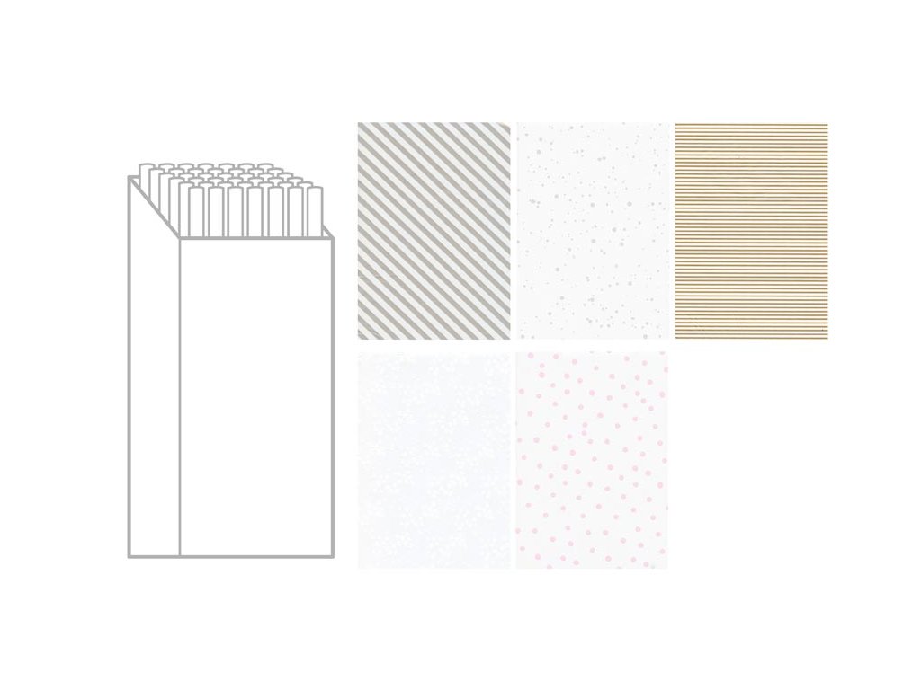 Transparentný celofán s farebnou potlačou v rolke. Jeho priehľadnosť umožňuje krásne zvýrazniť obsah balenia, či už sa jedná o darčeky, kvetinové aranžmány alebo darčekové koše. Celofán je pevný a odolný, čo zaisťuje, že vaše darčeky budú bezpečne a esteticky zabalené. Balenie: 50 ks Farba: priehľadná Hrúbka: 30 mikrónov Veľkosť rolky: 5000 x 700 mm Všetkých 50 ks je balených v kartónovej krabici. Dodávame v mixe podľa skladovej zásoby. Uvedená cena je za 1 ks.Dodatočné parametre
