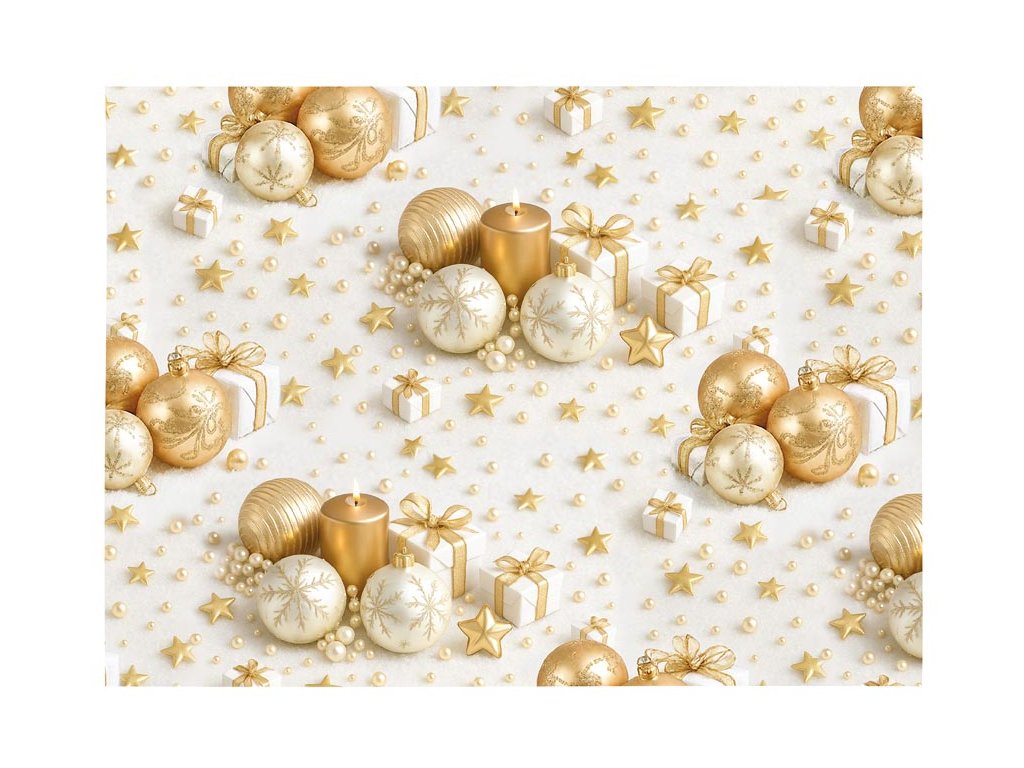 Vianoce v zlatých tónoch! Zlaté ozdoby, sviečky, perly a dokonale zabalené darčeky na jemne bielom podklade tvoria motív, ktorý pôsobí čisto, slávnostne a elegantne. Práve tento nadčasový dizajn ponúka vianočný baliaci papier Klasika – luxusný a predsa vkusne jednoduchý. Vďaka svojmu vycibrenému vzhľadu sa papier hodí k darčekom, ktoré majú zaujať bez zbytočných slov. Vynikne pod stromčekom, poteší pri odovzdávaní a zanechá dojem. Gramáž: 70 g Balenie: 150 ks Motív: vianočné gule, sviečky Rozmer hárku: 1000 x 700 mm Všetkých 150 ks je balených v sáčku v kartónovej krabici. Uvedená cena je za 1 ks.Dodatočné parametre