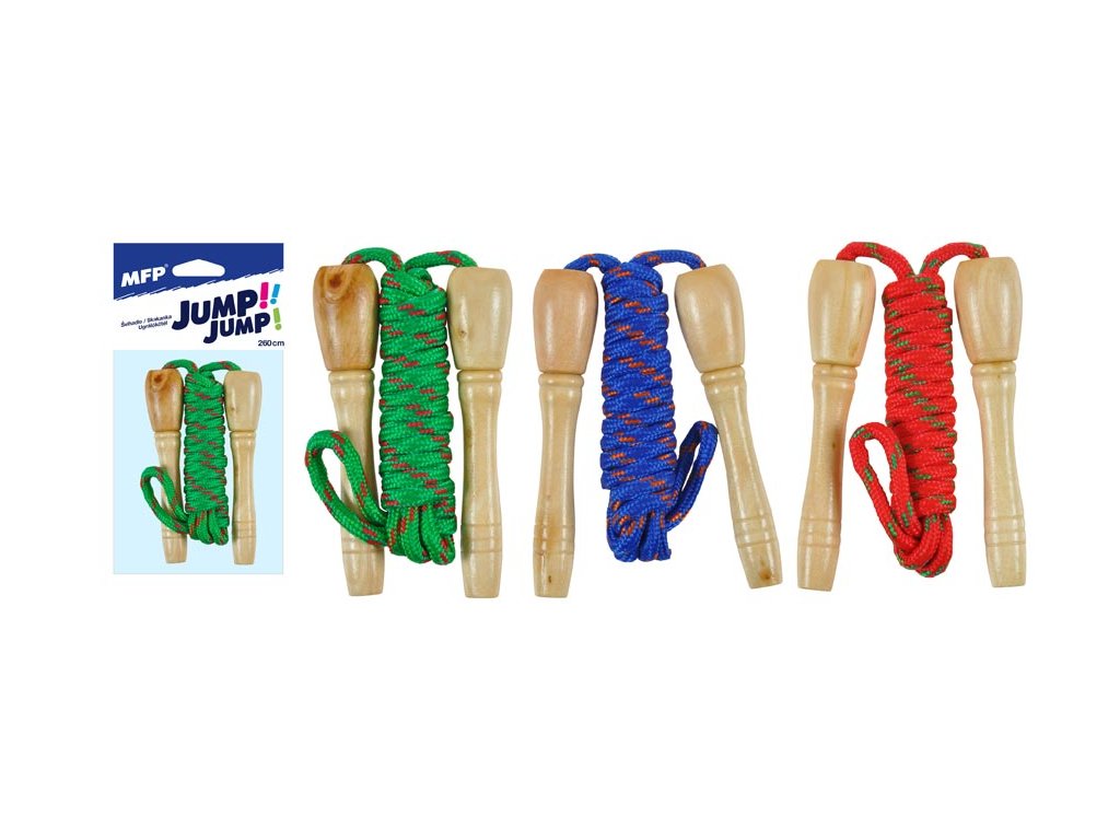 Detské švihadlo, drevené rukoväte, dĺžka lana 260cm, mix farieb. Uvedená cena je za 1 ks.Dodatočné parametre