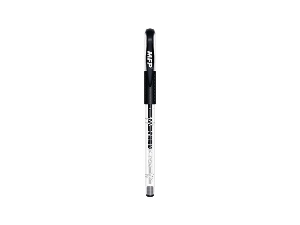 Gélové pero GS1038 s hrotom 0,5 mm. Vhodné pre školské, kancelárske, ale aj domáce použitie. Gélové pero má pogumovaný úchop, a tak zabraňuje kĺzaniu v ruke. Farba: čierna Dĺžka: 150 mm Náplň: 5400152 Prevedenie: s vŕškom Počet ks v balení: 12 ks Všetkých 12 ks je balených v papierovej krabičke. Uvedená cena je za 1 ks.Dodatočné parametre