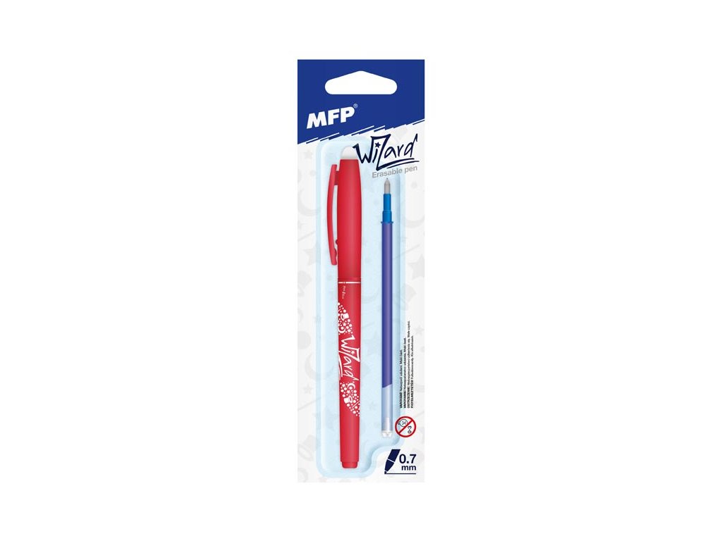 Magické, guľôčkové pero Wizard obsahuje špeciálny atrament tzv. vymaž a prepíš, alebo vymaž a nechaj znovu objaviť. Ak urobíte chybu, stačí len pero otočiť a plastovou špičkou text vymažete. Špička zahreje atrament, ten zmizne a je možné ho znova prepísať. Môžete si písať i tajné odkazy, po vygumovaní stačí len papier ochladiť pod bod mrazu a text sa znovu objaví. Toto vygumovateľné pero je balené po 24 ks v praktickom papierovom stojane. Podávame v mixe 4 farieb podľa skladových zásob. Prečítajte si, na akom princípe funguje gumovacie pero Wizard! Dĺžka: 142 mm Náplň: 0,7 mm Náplň: 5400186 Počet ks v balení: 12 ks Prevedenie: s vŕškom Farba: čierna, modrá, zelená, fialová Dodávame v mixe 4 farieb podľa skladovej dostupnosti. Uvedená cena je za 1 ks.Dodatočné parametre