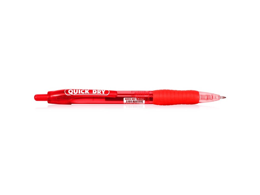 Rýchloschnúce, gélové, cvakacie pero (červená náplň). - obsahuje rýchloschnúci atrament - zasychá 3 x rýchlejšie ako klasický atrament - vďaka tomu si váš text nikdy omylom nerozmažete - pero je vybavené jemným hrotom 0,7 mm, stopa je celistvá a písanie sa stáva radosťou Toto gélové pero je určené aj pre ľavákov. Určené pre školákov, kancelárie aj domácnosti. Farba: červená Počet kusov v balení: 24 ks Prevedenie: stláčací mechanizmus Gélové perá sú balené v papierovej krabičke po 24 ks. Uvedená cena je za 1 ks.Dodatočné parametre