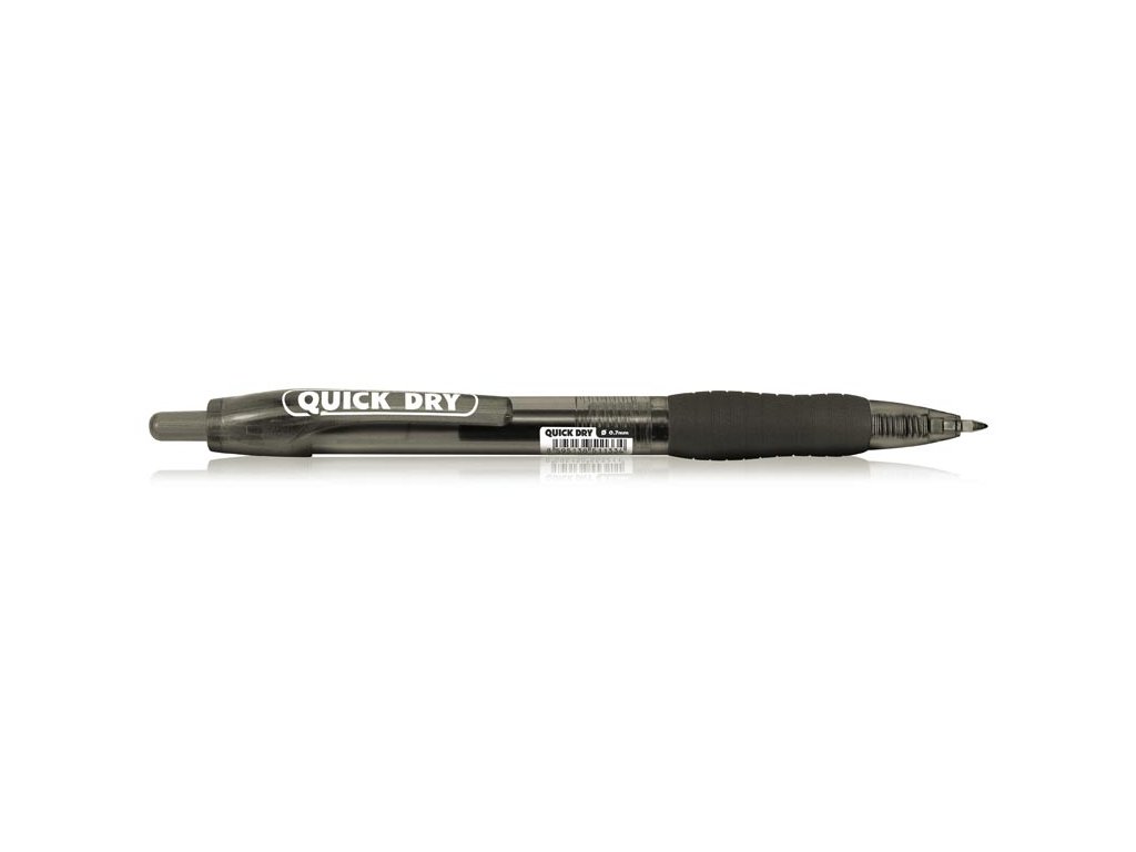 Rýchlo schnúce gélové cvakacie pero (čierna náplň). Toto gélové pro je určené aj pre ľavákov. Vhodné pre školákov, kancelárie i domácnosti. - obsahuje rýchlo schnúci atrament - zasychá 3x rýchlejšie ako klasický atrament – vďaka tomu si váš text nikdy nerozmažete - pero je vybavené jemným hrotom 0,7 mm, stopa je celistvá a písanie sa stáva radosťou Farba: čierna Počet kusov v balení: 24 ks Prevedenie: stláčací mechanizmus Gélové perá sú balené v pepierovej škatuľke po 24 ks. Uvedená cena je za 1 ks.Dodatočné parametre