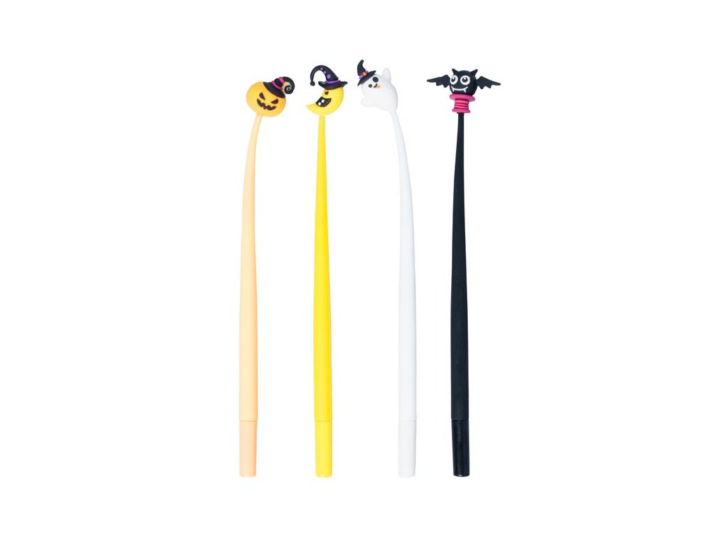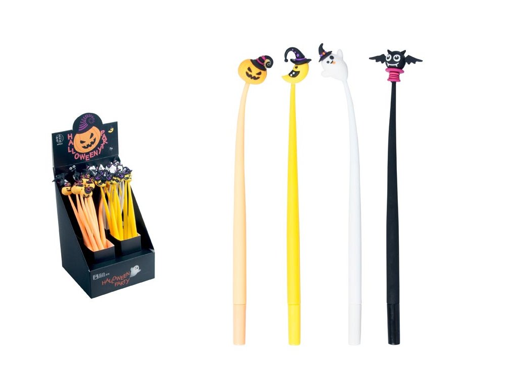 Zábavné gélové pero s halloweenskou tematikou a modrou náplňou. Pero sa pohodlne drží a vďaka gélovej náplni sa s ním ľahko píše. Farba: oranžová, žltá, biela, čierna Motív: tekvica, mesiac, duch, netopier Dodávame v 4 farbách podľa skladovej zásoby. Uvedená cena je za 1 ks.Dodatočné parametre