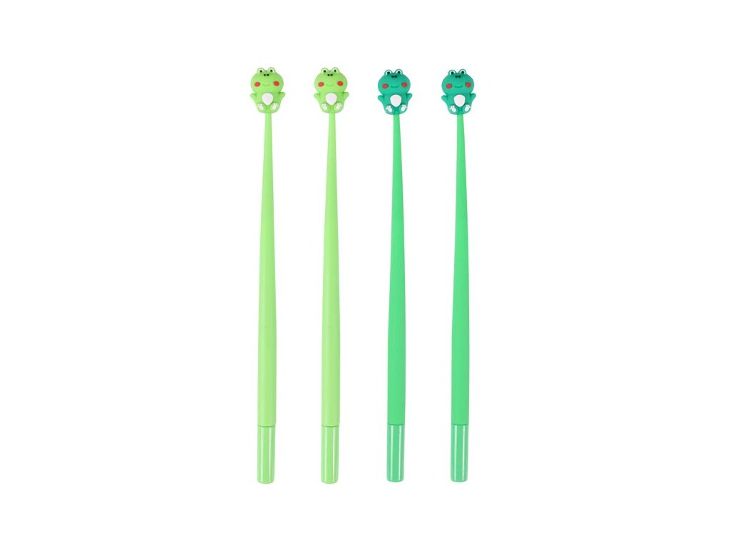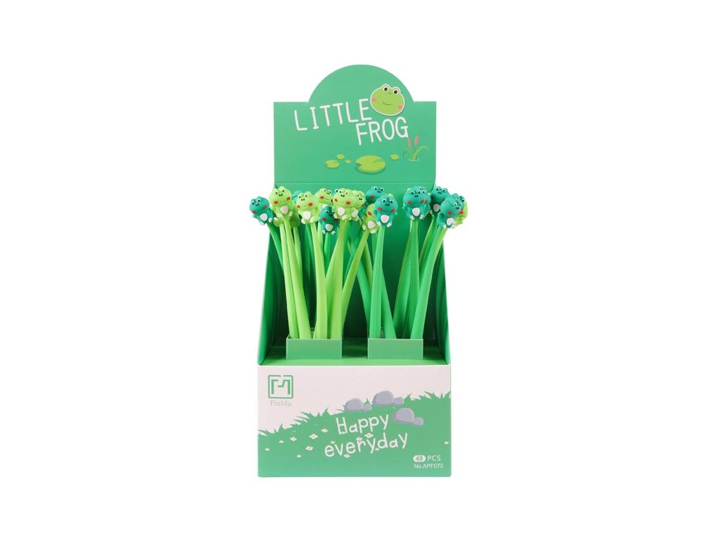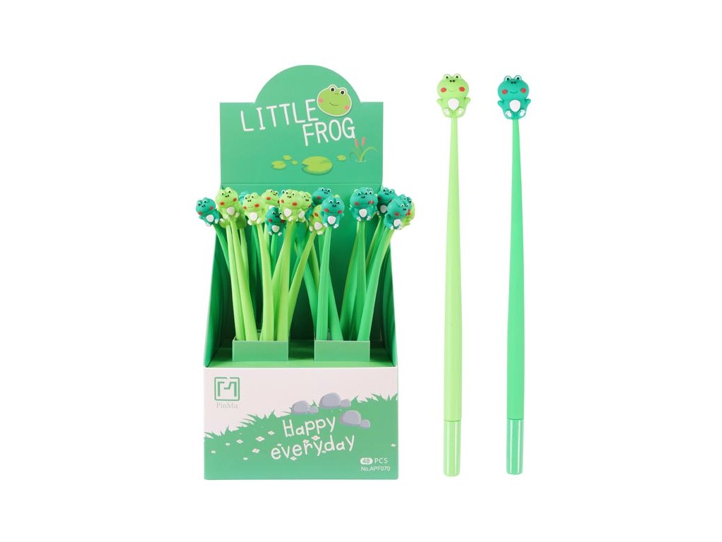 Gélové pero Fancy - Little frog s modrou náplňou a motívom žaby je ideálnym spoločníkom na každodenné písanie nielen pre deti, ale aj pre dospelých. Je ideálne na písanie poznámok, vedenie denníka alebo aj na každodenné úlohy v škole či v kancelárii. Jemný hrot so šírkou stopy 0,5 mm zaručuje hladké a pohodlné písanie. Pero je vybavené uzáverom, ktorý chráni hrot pred poškodením, a má pružné, odolné plastové telo, ktoré sa pohodlne drží. Je vhodné aj ako pekný darček pre všetkých milovníkov roztomilých doplnkov. Motív: žabka Hrot: 0,5 mm Počet kusov v balení: 48 ks Farba: svetlozelená, zelená UPOZORNENIE: Nevhodné pre deti do 3 rokov. Nebezpečenstvo vdýchnutia a prehltnutia malých častíc. Dodávame v mixe farieb podľa skladovej dostupnosti. Uvedená cena je za 1 ks.Dodatočné parametre
