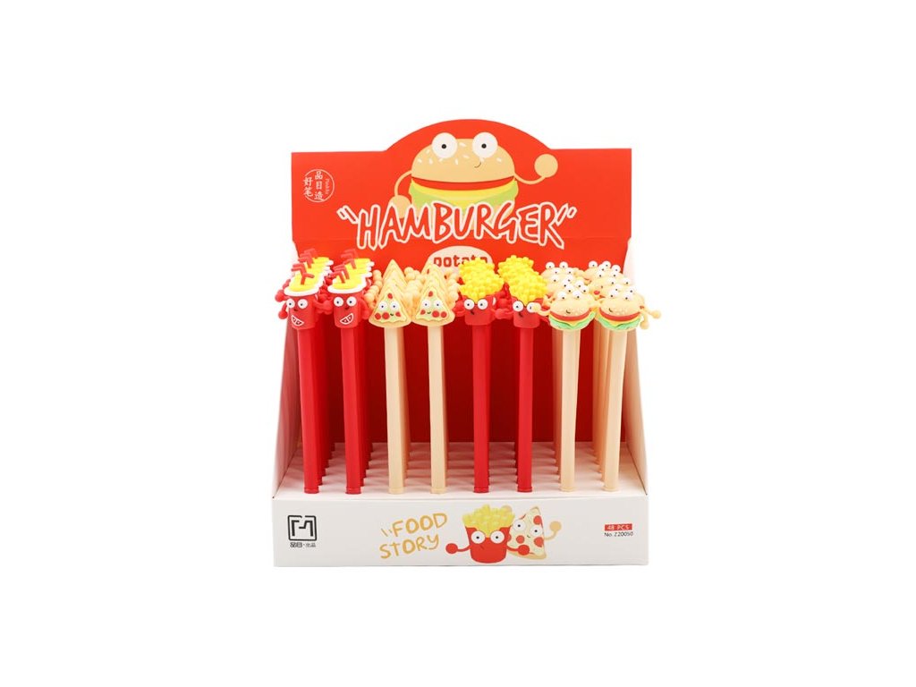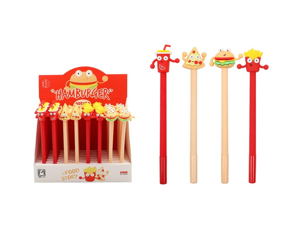 Fancy - Food Story“ gélové pero s modrou náplňou a hravými motívmi obľúbených pochúťok, ako sú pizza, hranolky, hamburger a nápoj. Obsahuje modrý atrament a šírka stopy je 0,5 mm, čo zaručuje presné a hladké písanie. Pero je vybavené uzáverom, ktorý chráni hrot pred poškodením, a má pružné, odolné plastové telo, ktoré sa pohodlne drží. Skvelý doplnok do školy, kancelárie alebo ako zábavný darček pre tých, ktorí majú radi zábavné písacie potreby. Hrot: 0,5 mm Farba: červená, béžová Počet kusov v balení: 48 ks Motív: pizza, hranolky, hamburger, nápoj UPOZORNENIE: Nevhodné pre deti do 3 rokov. Nebezpečenstvo vdýchnutia a prehltnutia malých častíc. Dodáva sa v kombinácii farieb a motívov podľa skladovej dostupnosti. Uvedená cena je za 1 ks.Dodatočné parametre
