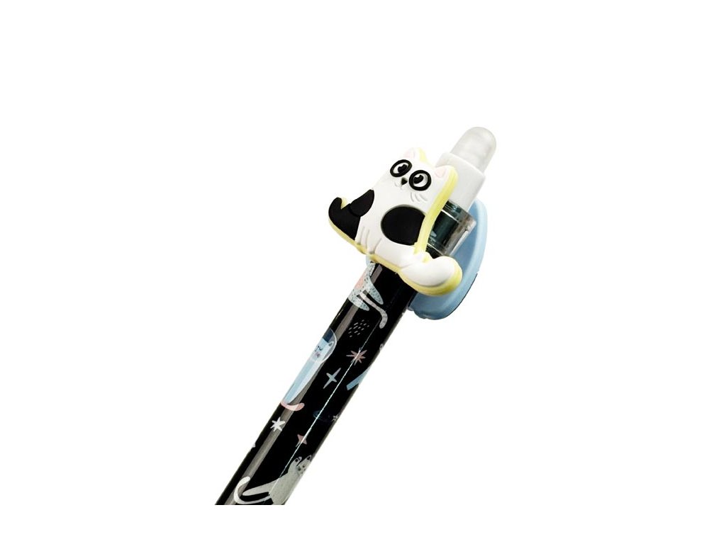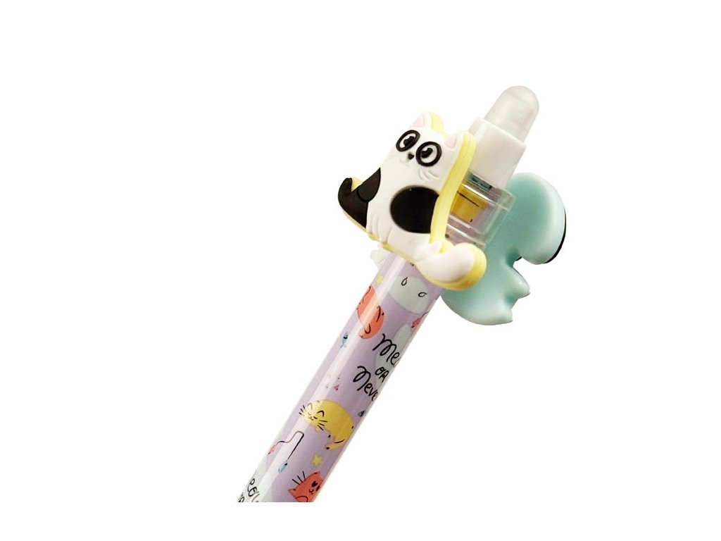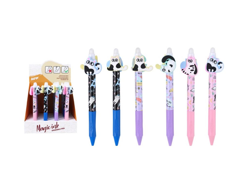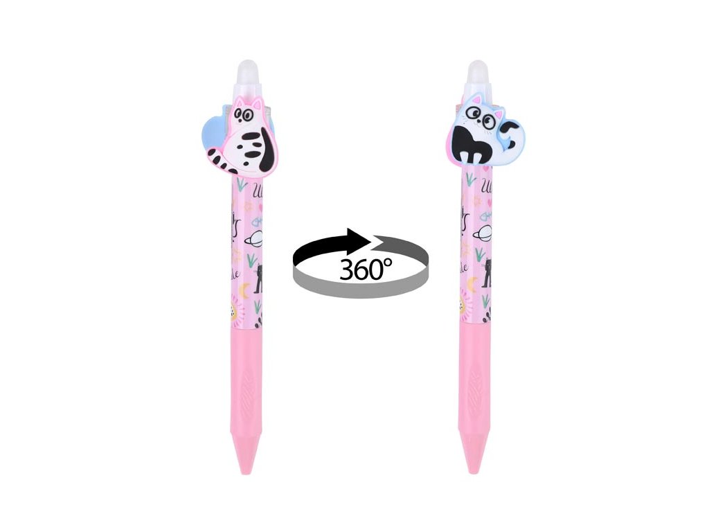Gumovacie guľôčkové pero s motívom mačiek je perfektnou voľbou pre všetkých milovníkov týchto roztomilých zvieratiek. Pero má jemný hrot s hrúbkou 0,5 mm, ktorý zaisťuje presné a hladké písanie. . Jedinečným prvkom sú pohyblivé figúrky mačiek umiestnené v hornej časti pera, ktoré sa môžu otáčať. Je ideálny pre školské použitie, úlohy alebo kreatívne písanie, kde oceníte nielen funkčnosť, ale aj originálny dizajn. Prečítajte si, na akom princípe funguje gumovacie pero Wizard ! Motív: mačky Hrot: 0,5 mm Počet kusov v balení: 24 ks Prevedenie: stláčací mechanizmus Náplň: 5400196 gumovacia modrá VAROVANIE: Nevhodné pre deti do 3 rokov. Nebezpečenstvo vdýchnutia a prehltnutia malých častíc. Dodávame v mixe po 6 ks podľa skladovej dostupnosti. Uvedená cena je za 1 ks.Dodatočné parametre