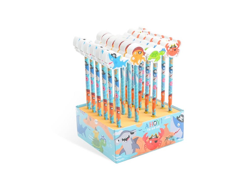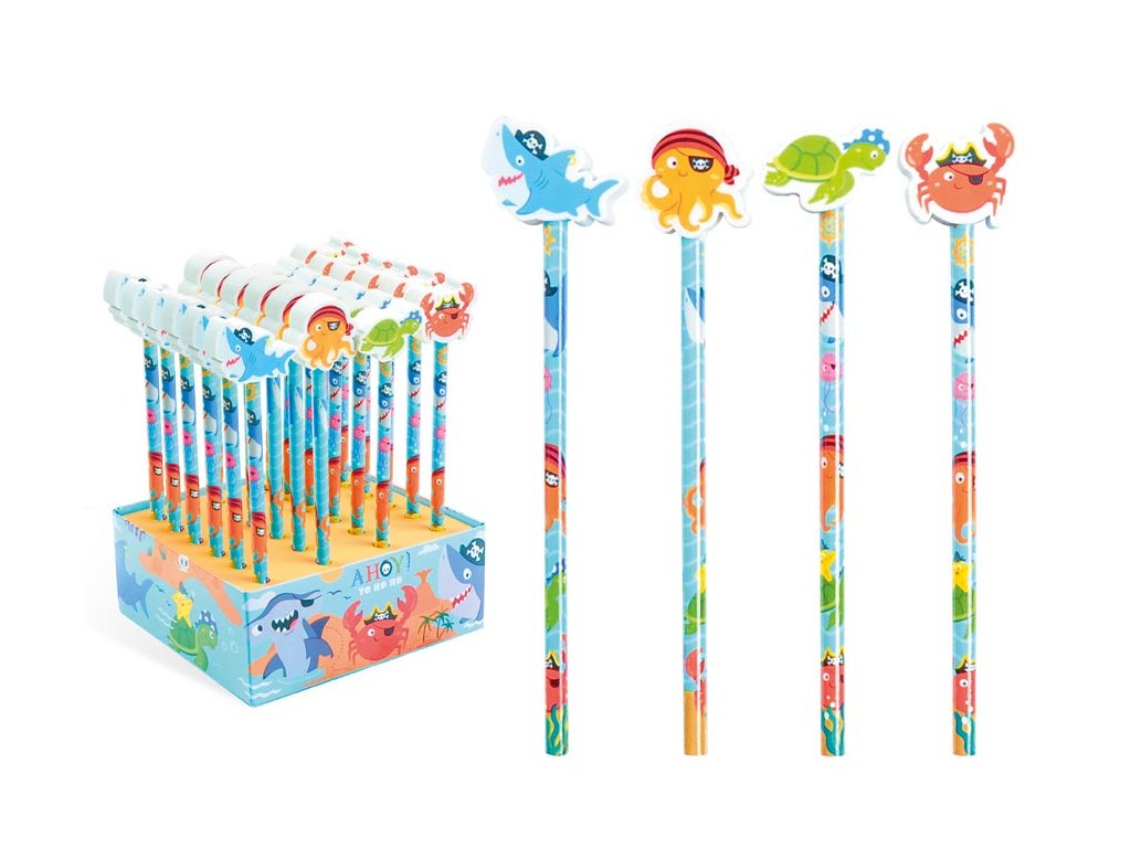 Grafitová ceruzka s gumou na konci, mix motívov morských živočíchov. MOTÍV: - žralok - chobotnica - korytnačka - krab Uvedená cena je za 1 ks.Dodatočné parametre