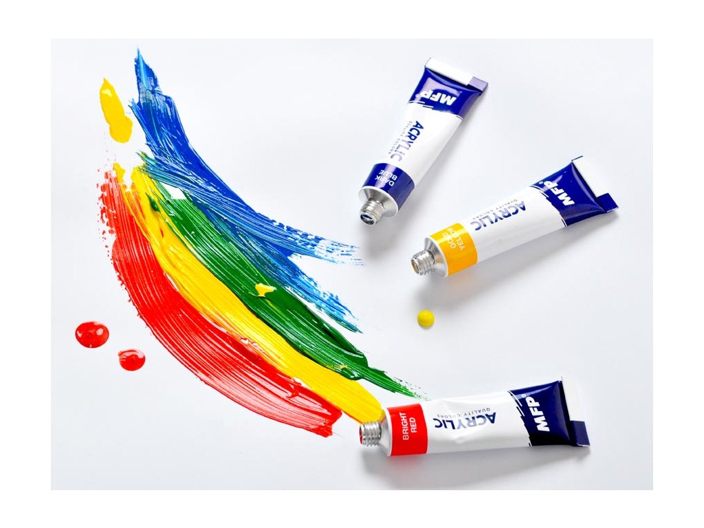 Akrilové farby sú vodou riediteľné a po zaschnutí vode odolné. Vyznačujú sa svojou farebnou sýtosťou i stálosťou, jemnou a hladkou konzistenciou a veľmi dobrými krycími schopnosťami. Sú vhodné na všetky nemastné a hladké povrchy, ako sú plátna, papier, drevo, kameň atď. Veľkým hitom pre deti i dospelých je aj maľovanie na kamienky. Tejto zábave už prepadli celé rodiny a práve pre ne sú tieto farby určené. Po zaschnutí odporúčame farbu ešte zafixovať akrilovým lakom, ktorý kresbu dokonale ochráni. Set obsahuje 12 farieb v kovových tubách. Farby v balení: čierna, ružová, biela, tmavomodrá, svetlomodrá, tmavočervená, svetločervená, ružová, hnedá, tmavozelená, zelená, tmavožltá, svetložltá. Obsah farby v tube: 12 mDodatočné parametre