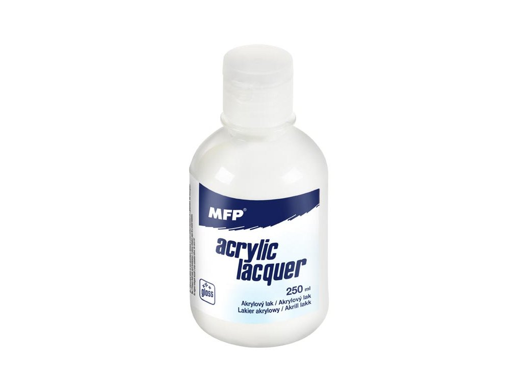 Akrylový lak transparentný - lesklý, fľaštička 250 ml. Je vhodný na papier, drevo, kartón, plasty, ale napríklad aj na prelakovanie maľovaných kamienkov. Ošetrená plocha je po zaschnutí vodeodolná a lesklá. Farba: transparentná/lesklá Obsah farby v jednej fľaši: 250 ml Varovanie: Nevhodné pre deti do 3 rokov. EN71 - 1,2,3,9 Uvedená cena je za 1 ks.Dodatočné parametre