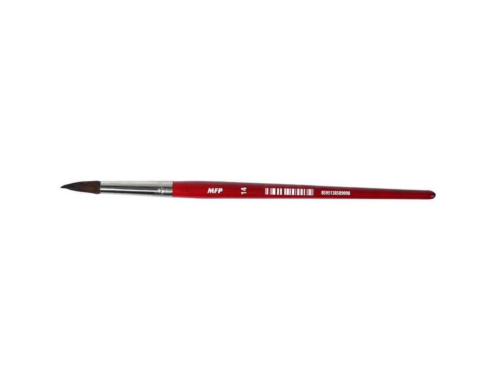 Školský štetec guľatý, vhodný na hodiny výtvarnej výchovy, ale aj na domáce kreatívne tvorby. Veľkosť: 14 Farba: červená Materiál: ovce + nylon POUŽITIE: Na maľbu vodovými a temperovými farbami, na vykresľovanie rôznych plôch na papieri, na maľovanie na kamienky. Štetce sú uložené v papierovej škatuli po 12 ks. Uvedená cena je za 1 ks.Dodatočné parametre