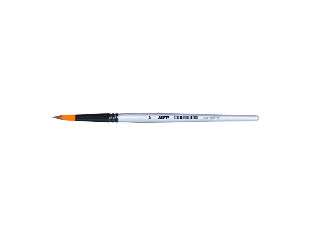 Guľatý štetec s jemnými syntetickými vlasmi tvarovanými do špičky a drevenou rukoväťou. Vďaka syntetickým vláknam sa farba ľahko rozotiera a dobre drží tvar. Je menej náchylný na poškodenie farbami a riedidlami ako prírodný štetec. Ľahko sa udržiava v čistote. Vhodný na použitie v škole, ako aj na rôzne maliarske techniky. Ideálny na maľovanie detailov, línií alebo vyfarbovanie. Štetiny sú chránené plastovým uzáverom. Veľkosť: 12 Farba: strieborná/čierna Materiál: syntetické vlákno POUŽITIE: Na maľovanie akrylovými a akvarelovými farbami. Štetce sú uložené v papierovej škatuľke po 12 ks. Uvedená cena je za 1 ks.Dodatočné parametre