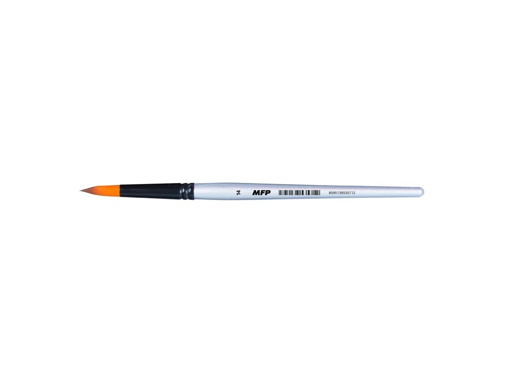 Guľatý štetec s jemnými syntetickými vlasmi tvarovanými do špičky a drevenou rukoväťou. Vďaka syntetickým vláknam sa farba ľahko rozotiera a dobre drží tvar. Je menej náchylný na poškodenie farbami a riedidlami ako prírodný štetec. Ľahko sa udržiava v čistote. Vhodný na použitie v škole, ako aj na rôzne maliarske techniky. Ideálny na maľovanie detailov, línií alebo vyfarbovanie. Štetiny sú chránené plastovým uzáverom. Veľkosť: 14 Farba: strieborná/čierna Materiál: syntetické vlákno POUŽITIE: Na maľovanie akrylovými a akvarelovými farbami. Štetce sú uložené v papierovej škatuľke po 12 ks. Uvedená cena je za 1 ks.Dodatočné parametre
