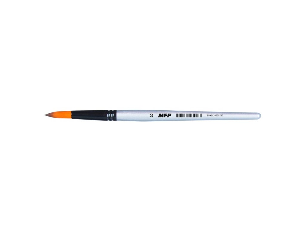 Guľatý štetec s jemnými syntetickými vlasmi tvarovanými do špičky a drevenou rukoväťou. Vďaka syntetickým vláknam sa farba ľahko rozotiera a dobre drží tvar. Je menej náchylný na poškodenie farbami a riedidlami ako prírodný štetec. Ľahko sa udržiava v čistote. Vhodný na použitie v škole, ako aj na rôzne maliarske techniky. Ideálny na maľovanie detailov, línií alebo vyfarbovanie. Štetiny sú chránené plastovým uzáverom. Veľkosť: 20 Farba: strieborná/čierna Materiál: syntetické vlákno POUŽITIE: Na maľovanie akrylovými a akvarelovými farbami. Štetce sú uložené v papierovej škatuľke po 12 ks. Uvedená cena je za 1 ks.Dodatočné parametre