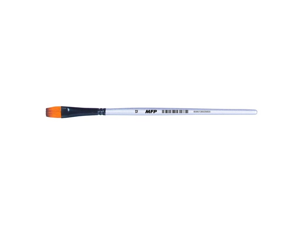 Štetec plochý s jemnými syntetickými vlasmi a drevenou rukoväťou. Vďaka syntetickým vláknam sa farba ľahšie rozotiera. Je menej náchylný na poškodenie farbami a riedidlami ako prírodný štetec. Ľahko sa udržiava v čistote. Vhodný na použitie v škole, ako aj na rôzne maliarske techniky. Ideálny na maľovanie väčších plôch alebo tieňovanie. Môže sa použiť na maľovanie plochých alebo okrajových tenkých línií. Veľkosť: 12 Farba: strieborná/čierna Materiál: syntetické vlákno POUŽITIE: Na maľovanie akrylovými, akvarelovými, temperovými a olejovými farbami. Štetce sú uložené v papierovej škatuľke po 12 ks. Uvedená cena je za 1 ks.Dodatočné parametre