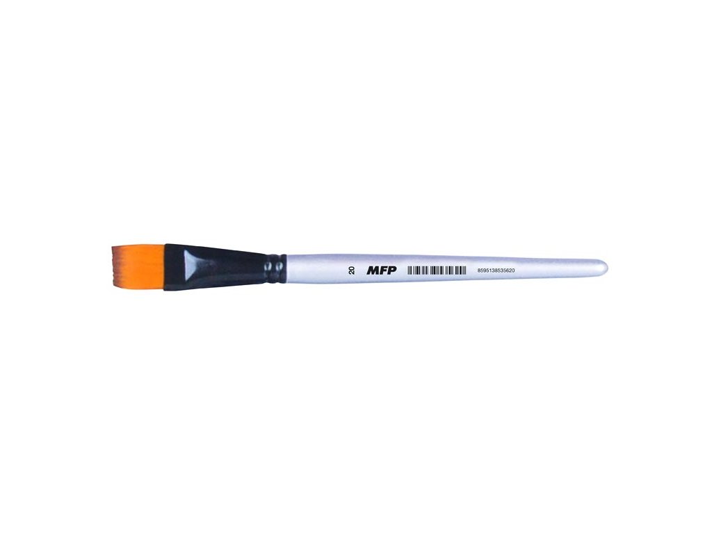 Štetec plochý s jemnými syntetickými vlasmi a drevenou rukoväťou. Vďaka syntetickým vláknam sa farba ľahšie rozotiera. Je menej náchylný na poškodenie farbami a riedidlami ako prírodný štetec. Ľahko sa udržiava v čistote. Vhodný na použitie v škole, ako aj na rôzne maliarske techniky. Ideálny na maľovanie väčších plôch alebo tieňovanie. Môže sa použiť na maľovanie plochých alebo okrajových tenkých línií. Veľkosť: 20 Farba: strieborná/čierna Materiál: syntetické vlákno POUŽITIE: Na maľovanie akrylovými, akvarelovými, temperovými a olejovými farbami. Štetce sú uložené v papierovej škatuľke po 12 ks. Uvedená cena je za 1 ks.Dodatočné parametre