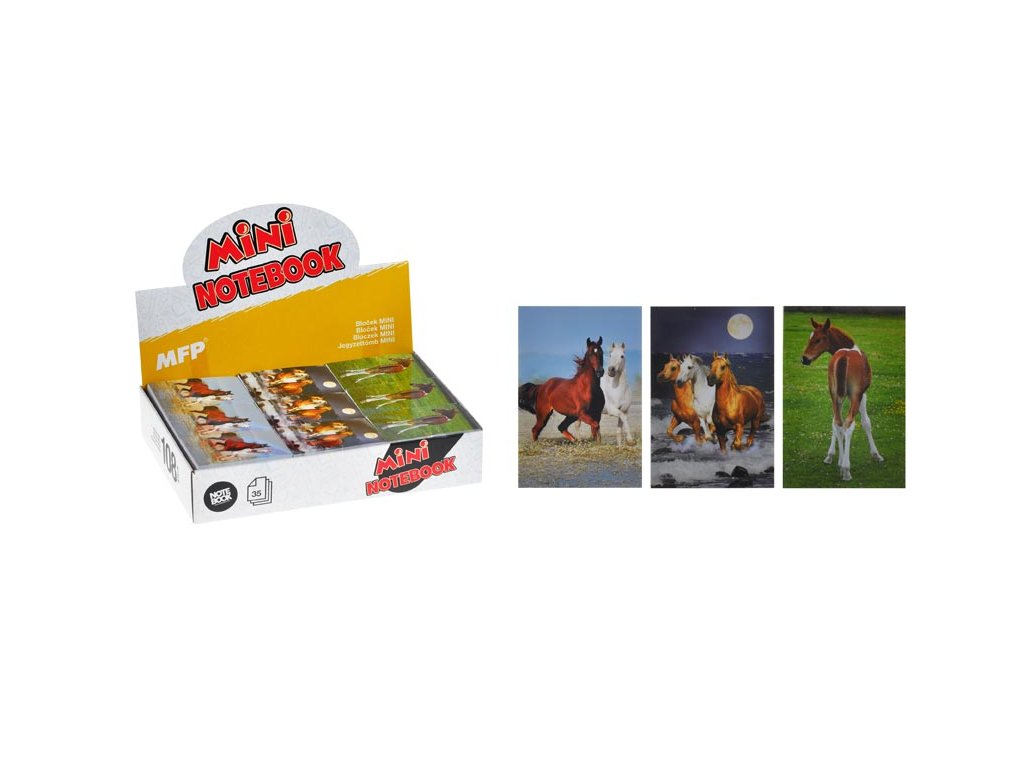 Detský bloček s vodotlačou vhodný na poznámky s motívom koní. Balenie: 108 ks Počet listov: 35 Motív: kone (3 motívy) Všetkých 108 ks je balených v krabičke. Dodávame v mixe podľa skladovej zásoby. Uvedená cena je za 1 ks.Dodatočné parametre
