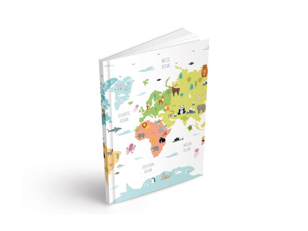 Záznamová kniha MFP vo formáte A5, linajková, s motívom mapy sveta, na ktorej sú znázornené zvieratá charakteristické pre jednotlivé kontinenty. Je perfektná na zapisovanie poznámok v škole, v kancelárii alebo na stretnutiach, a zároveň skvele poslúži ako denník, plánovač či zápisník pre vaše nápady a úlohy. Dosky sú vyrobené z pevného lepeného kartónu pokrytého laminom, čo zaisťuje odolnosť. Vďaka väzbe V8, známej svojou mimoriadnou pevnosťou, zostanú stránky bezpečne na svojom mieste aj pri častom používaní. Formát: A5 Motív: mapa Veľkosť riadku: 8 mm Počet listov: 100, s linkami Uvedená cena je za 1 ks.Dodatočné parametre