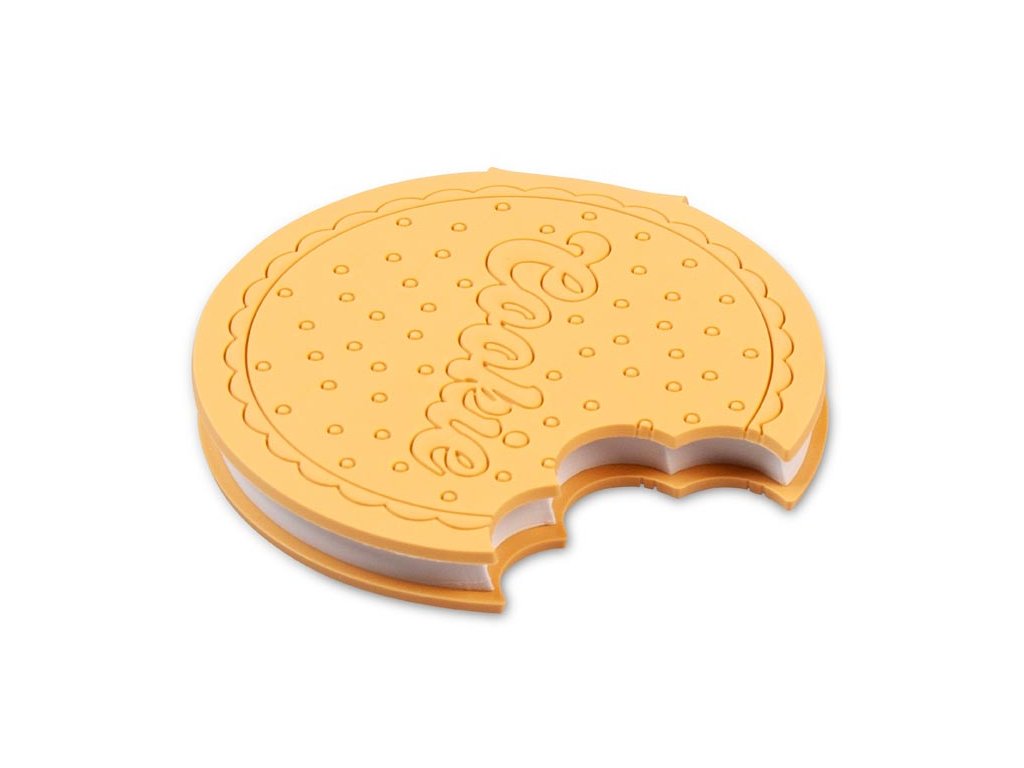 V hravom dizajne Poznámkový blok, ktorý na prvý pohľad zaujme svojím hravým dizajnom. Notes Sušienka od Gifty má originálny tvar sušienky s „odhryznutým“ okrajom, vďaka čomu sa stane nielen praktickým pomocníkom, ale aj zábavným doplnkom na vašom stole. Je ideálny na zapisovanie poznámok, nápadov alebo dôležitých odkazov. Vďaka kompaktným rozmerom sa zmestí do kabelky, batohu aj zásuvky pracovného stola. Je perfektnou voľbou do školy, kancelárie aj domácnosti – a navyše aj milý tip na darček. Farba: béžová Rozmer: 90 × 90 mm Uvedená cena je za 1 ks.Dodatočné parametre