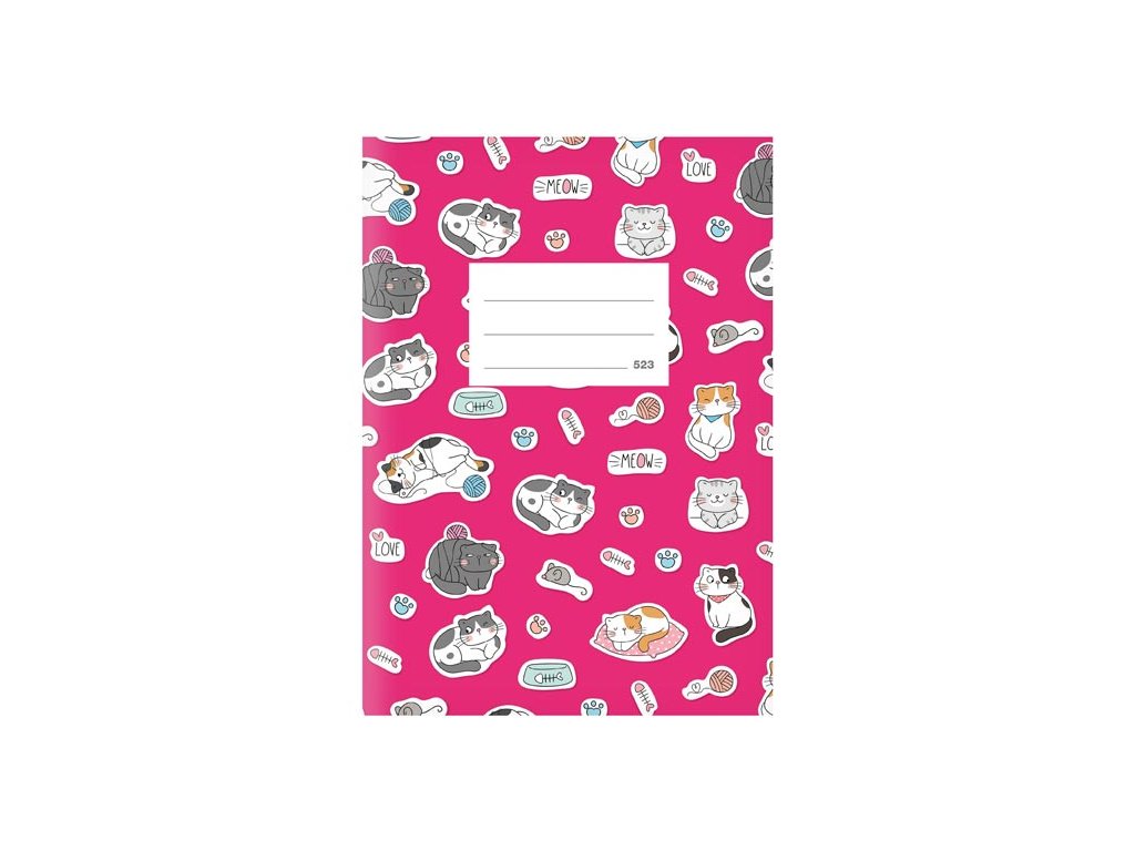 Školský linajkový zošit vo formáte A5, tmavoružovej farby, s motívmi mačiek, v originálnych doskách s matným laminom a lokálnym UV lakom. Stránky sú bez okrajov. Typ: 523 Formát: A5 Motív: mačky Farba: sýta ružová Šírka riadku: 12 mm Počet listov: 20 s linkou Gramáž listu papiera: 80 g Dosky: matný kriedový papier 300 g Uvedená cena je za 1 ks. Viete, čo znamená číselné označenie na zošitoch?Dodatočné parametre