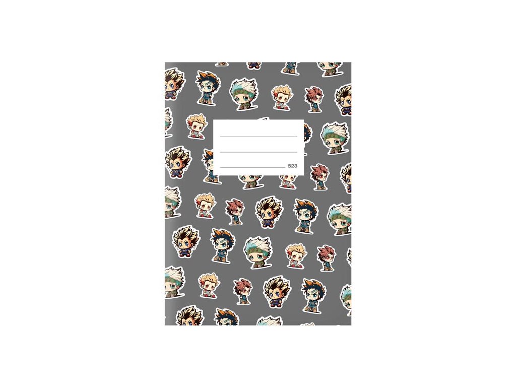 Školský linajkový zošit vo formáte A5, tmavosivej farby, s motívmi anime maskotov, v originálnych doskách s matným laminom a lokálnym UV lakom. Stránky sú bez okrajov. Typ: 523 Formát: A5 Farba: tmavo šedá Šírka riadku: 12 mm Motív: anime maskoti Počet listov: 20 s linkou Gramáž listu papiera: 80 g Dosky: matný kriedový papier 300 g Uvedená cena je za 1 ks. Viete, čo znamená číselné označenie na zošitoch?Dodatočné parametre
