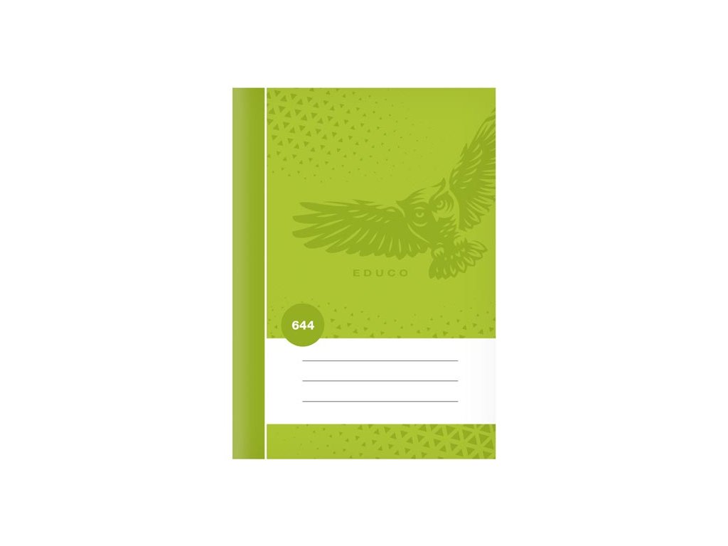 Školský linajkový zošit vo formáte A6, v zelenej farbe, s motívom sovy, v doskách z kriedového papiera. Kvalitne spracovaný "zošit" je vhodný najmä pre deti na 1. stupni, ale je vhodný na poznámky prakticky pre každého žiaka. Typ: 644 Formát: A6 Motív: sova Farba: zelená Šírka riadku: 8 mm Počet listov: 40 s linkou Gramáž listu papiera: 60 g Dosky: matný kriedový papier 200 g Uvedená cena je za 1 ks. Viete, čo znamená číselné označenie na zošitoch?Dodatočné parametre
