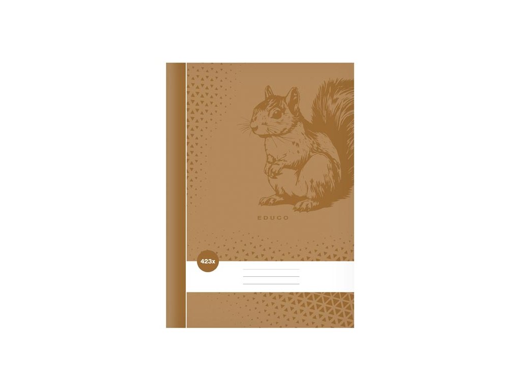 Školský zošit linkovaný/čistý vo formáte A4, v hnedej farbe, s motívom veveričky, v doskách z kriedového papiera. Každá strana je z 2/3 linajková a z 1/3 čistá. Zošit je určený pre žiakov prvého stupňa základnej školy. Typ: 423x Formát: A4 Farba: hnedá Počet listov: 20 Motív: veverička Šírka riadkov: 12mm Gramáž listu papiera: 60 g Dosky: matný kriedový papier 200 g Uvedená cena je za 1 ks. Viete, čo znamená číselné označenie na zošitoch?Dodatočné parametre