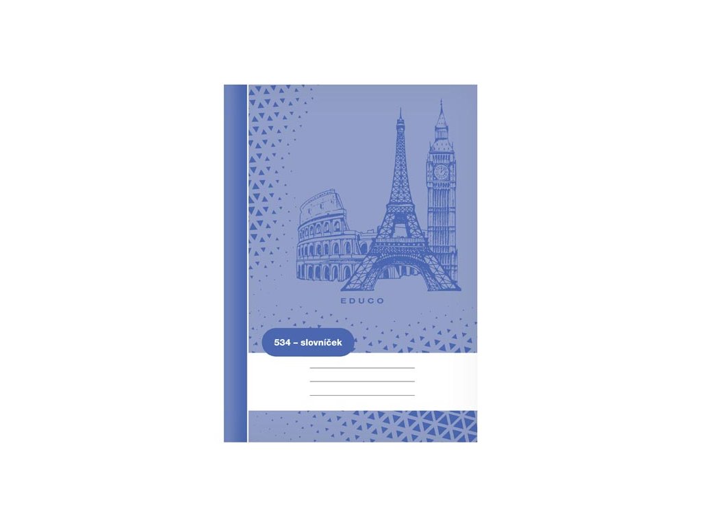 Školský slovníček pre malých aj veľkých! Prehľadný slovníček s dvoma kolmicami vo formáte A5 je ideálny na zapisovanie nových slovíčok, fráz alebo základných pravidiel gramatiky. Skvelý pomocník do hodín jazykov aj na domáce precvičovanie. Elegantná modrá obálka s motívmi európskych pamiatok – Eiffelovej veže, Kolosea a Big Benu – prináša štipku inšpirácie a prebúdza chuť objavovať svet. Typ: 534 Formát: A5 Farba: fialová Gramáž papiera: 60 g Motív: svetové pamiatky Počet listov: 30, linajkové Šírka riadku: 8 mm + 2 zvislé linky Dosky: matný kriedový papier 200 g Uvedená cena je za 1 ks.Dodatočné parametre