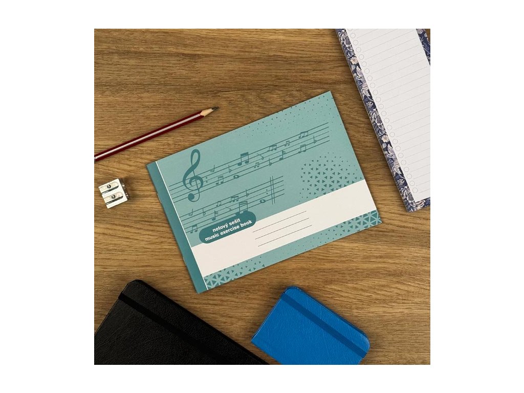 Jednoducho - miesto pre noty! Notový školský zošit je ideálnou pomôckou na výučbu hudobnej výchovy, zápis nôt aj vlastné hudobné nápady. Využijú ho žiaci základných škôl aj študenti umeleckých škôl pri hodinách hudobnej náuky, počas hudobných diktátov alebo pri cvičení na hudobný nástroj. Zošit obsahuje 16 listov s prehľadne vyznačenou notovou osnovou, v ktorej má každá nota svoje miesto. Ležatý formát A5 zaisťuje pohodlné písanie a skvele sedí na lavici aj na notový stojan. Obálka v jemnej tyrkysovej farbe s hudobným motívom pôsobí sviežo a inšpiratívne. Formát: A5 Farba: zelená Počet listov: 16 Šírka riadku: 2 mm Gramáž listov papiera: 60 g Dosky: matný kriedový papier 200 g Uvedená cena je za 1 ks.Dodatočné parametre