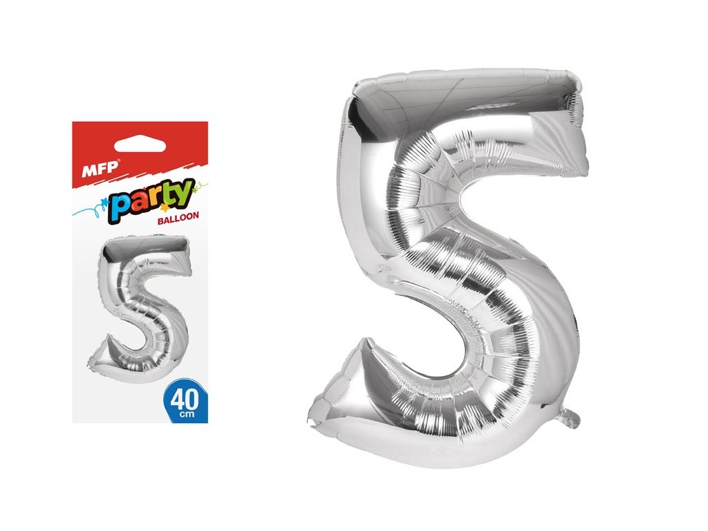 Nafukovací fóliový balónik v tvare čísla 5. Balónik je vyrobený zo striebornej fólie. Na hornom okraji balónu sú očká na priviazanie. Balóniky sú vhodné na narodeninové oslavy, firemné párty a iné spoločenské udalosti. Výška balónu: 40 cm Uvedená cena je za 1 ks Balenie obsahuje: balónik, trubičku na nafukovanie, návod. Návod na nafukovanie balónika: 1. Vybaľte balónik a plastovú trubičku z obalu 2. Zasuňte trubičku do otvoru na nafukovanie, ktorý je umiestnený na spodnej strane balónika. 3. Fúkaním cez trubičku nafúknite balónik 4. Opatrne vytiahnite trubičku z balónika (systém je navrhnutý tak, aby ste nemuseli balónik zaväzovať) 5. Na vyfúkanie balónika zasuňte trubičku opäť do otvoru a tlačte na balónik Varovanie: Vhodné pre deti od 8 rokov. Deti sa môžu prasknutými alebo spustenými balónikmi zadusiť alebo uškrtiť. Používajte ich len za prítomnosti dospelej osoby. Dospelá osoba sa po nafúknutí balónu musí presvedčiť, že ho deti používajú bezpečne. Spustené balóniky udržiavajte mimo dosahu detí, prasknuté ihneď zlikvidujte. K nafúknutiu balónika používajte hustilku. Nepribližujte balónik k očiam a k tvári. Po prasknutí môže balónik poraniť. Je vyrobený z prírodného kaučuku, latexu. Je určený k dekoratívnym cieľom. Je tu nebezpečenstvo vdýchnutia a prehltnutia malých častíc.Dodatočné parametre