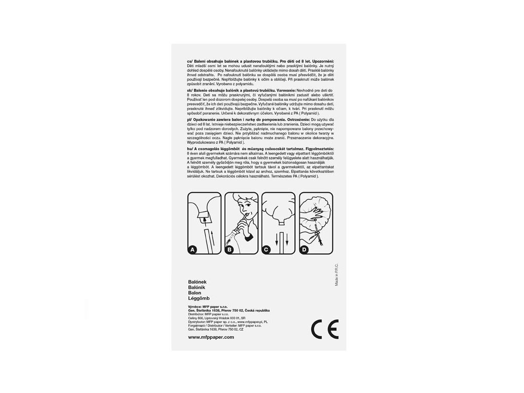 Nafukovací fóliový balónik v tvare č. 0. Hitom posledných rokov sú obľúbené balóniky v tvare číslic, ktoré oživia celú narodeninovú oslavu a určite potešia oslávenca. Narodeninová oslava sa môže začať! Balónik je vyrobený zo striebornej fólie. Na hornej strane balónika sú očká na priviazanie. Výška balónika: 75 cm BALENIE OBSAHUJE: -balónik -brko na nafúknutie -návod NÁVOD K NAFÚKNUTIU BLÓNIKA: 1. vybaľte balónik a plastové brko z obalu 2. zasuňte brko do otvoru na nafukovanie, ktorý je umiestnený na spodnej strane balónika 3. fúkaním cez brko nafúknete balónik 4. opatrne vytiahnite brko z balónika (systém je navrhnutý tak, že nemusíte ústie balónika zaväzovať) 5. k vyfúknutiu balónika zasuňte brko opäť do otvoru a tlačte na balónik VAROVANIE: Vhodné pre deti od 8 rokov. Deti sa môžu prasknutými či vyfúkanými balónikmi zadusiť alebo uškrtiť. Používajte ich len pod dozorom dospelej osoby. Dospelá osoba sa po nafúknutí balónu musí presvedčiť, že ho deti používajú bezpečne. Vyfúknuté balóny udržiavajte mimo dosahu detí a prasknuté ihneď zlikvidujte. K nafukovaniu balónikov používajte hustilku. Nepribližujte balóny k očiam a k tvári. Pri prasknutí môže balónik spôsobiť zranenie. Vyrobené sú z prírodného kaučuku, latexu. Určené k dekoratívnym účelom. Nebezpečenstvo vdýchnutia a prehltnutia malých častí. Uvedená cena je za 1 ks. Dodávame vo vrecku.Dodatočné parametre