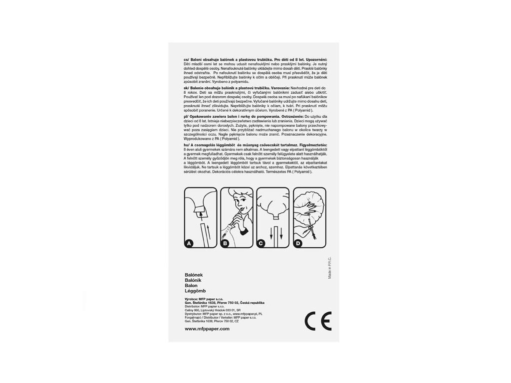 Nafukovací fóliový balónik v tvare č. 1. Hitom posledných rokov sú obľúbené balóniky v tvare číslic, ktoré oživia celú narodeninovú oslavu a určite potešia oslávenca. Narodeninová oslava sa môže začať! Balónik je vyrobený zo striebornej fólie. Na hornej strane balónika sú očká na priviazanie. Výška balónika: 75 cm BALENIE OBSAHUJE: -balónik -brko na nafúknutie -návod NÁVOD K NAFÚKNUTIU BLÓNIKA: 1. vybaľte balónik a plastové brko z obalu 2. zasuňte brko do otvoru na nafukovanie, ktorý je umiestnený na spodnej strane balónika 3. fúkaním cez brko nafúknete balónik 4. opatrne vytiahnite brko z balónika (systém je navrhnutý tak, že nemusíte ústie balónika zaväzovať) 5. k vyfúknutiu balónika zasuňte brko opäť do otvoru a tlačte na balónik VAROVANIE: Vhodné pre deti od 8 rokov. Deti sa môžu prasknutými či vyfúkanými balónikmi zadusiť alebo uškrtiť. Používajte ich len pod dozorom dospelej osoby. Dospelá osoba sa po nafúknutí balónu musí presvedčiť, že ho deti používajú bezpečne. Vyfúknuté balóny udržiavajte mimo dosahu detí a prasknuté ihneď zlikvidujte. K nafukovaniu balónikov používajte hustilku. Nepribližujte balóny k očiam a k tvári. Pri prasknutí môže balónik spôsobiť zranenie. Vyrobené sú z prírodného kaučuku, latexu. Určené k dekoratívnym účelom. Nebezpečenstvo vdýchnutia a prehltnutia malých častí. Uvedená cena je za 1 ks. Dodávame vo vrecku.Dodatočné parametre