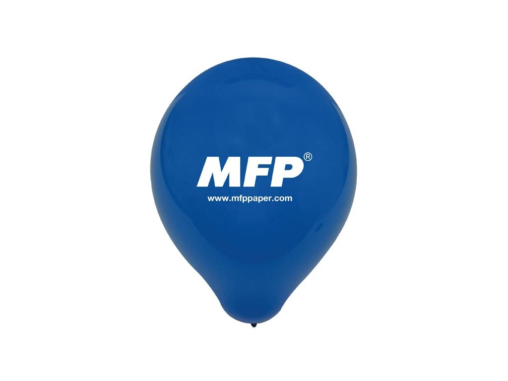 Nafukovací modrý balónik s reklamnou bielou potlačou MFP. Uvedená cena je za 1 ks.Dodatočné parametre